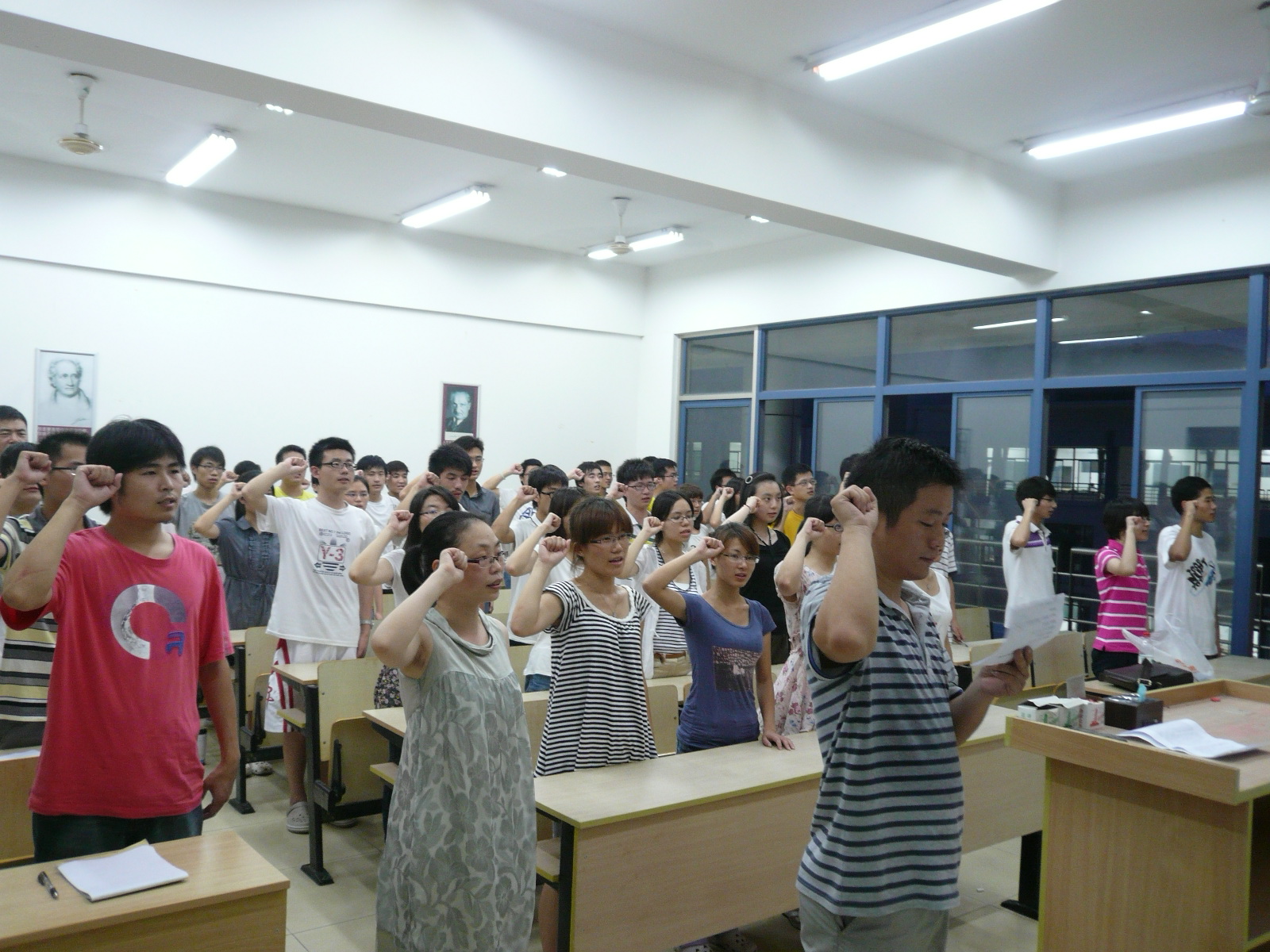 首先,支部全体党员起立齐声高唱中华人民共和国国歌,充分表达对党、对祖国的热爱之情。接着,在黄洁老师的带领下,大家一起学习了《胡锦涛在庆祝中国共产党成立90周年大会上的讲话》中一段对青年说的话,胡主席说到:“我们党的队伍里始终活跃着怀抱崇高理想、充满奋斗激情的青年人,这是我们党历经90年风雨而依然保持蓬勃生机的一个重要保证。青年是祖国的未来、民族的希望,也是我们党的未来和希望。全党都要关注青年、关心青年、关爱青年,倾听青年心声,鼓励青年成长,支持青年创业。党对青年寄予厚望,人民对青年寄予厚望。全国广大青年一定要深刻了解近代以来中国人民和中华民族不懈奋斗的光荣历史和伟大历程,永远热爱我们伟大的祖国,永远热爱我们伟大的人民,永远热爱我们伟大的中华民族,坚定理想信念,增长知识本领,锤炼品德意志,矢志奋斗拼搏,在人生的广阔舞台上充分发挥聪明才智、尽情展现人生价值,让青春在为党和人民建功立业中焕发出绚丽光彩。”通过这段话,员工党员们充分认识到了党对广大青年的充分肯定和殷殷期待,全体党员深受鼓舞,纷纷表示将始终拥护共产党的领导,从自身做起,为共产主义事业愿意奋斗终身!在“对党说句心里话”环节中,支部党员们通过留言的形式在纸上写下了对党的美好祝福和真诚的赞美,表达了同学们对党深厚的感情。最后在支部副书记胡国宝老师的领誓下,支部党员在党旗下一起重温了入党誓词,使全体党员重新经受一次党的洗礼,接受党性再教育。