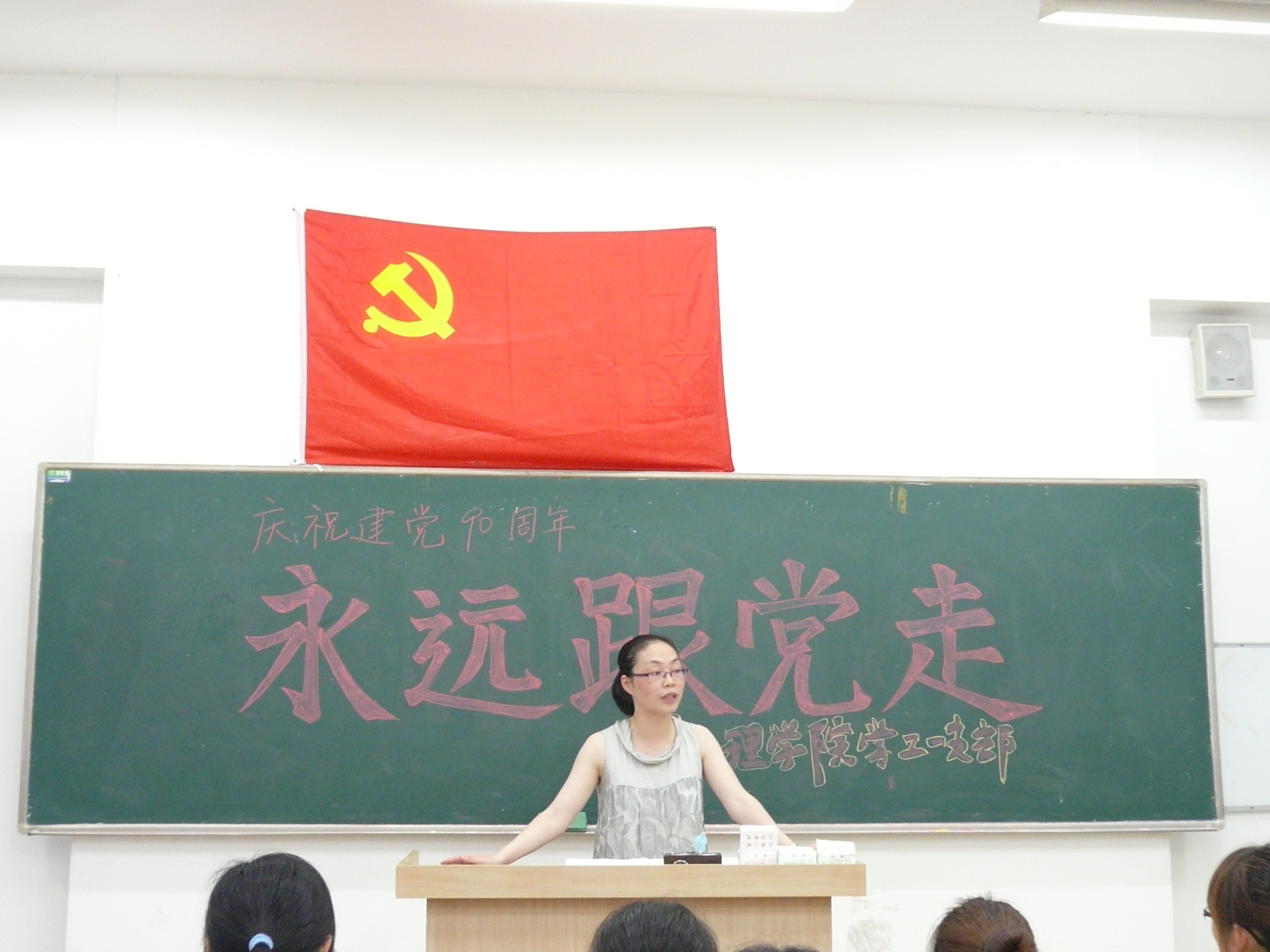 2011年7月6日晚上,为庆祝建党90周年华诞,太阳成集团tyc学工一支部在教2-509举行“永远跟党走”主题党日活动。支部全体党员参加了此次活动,由支部书记黄洁老师主持会议。