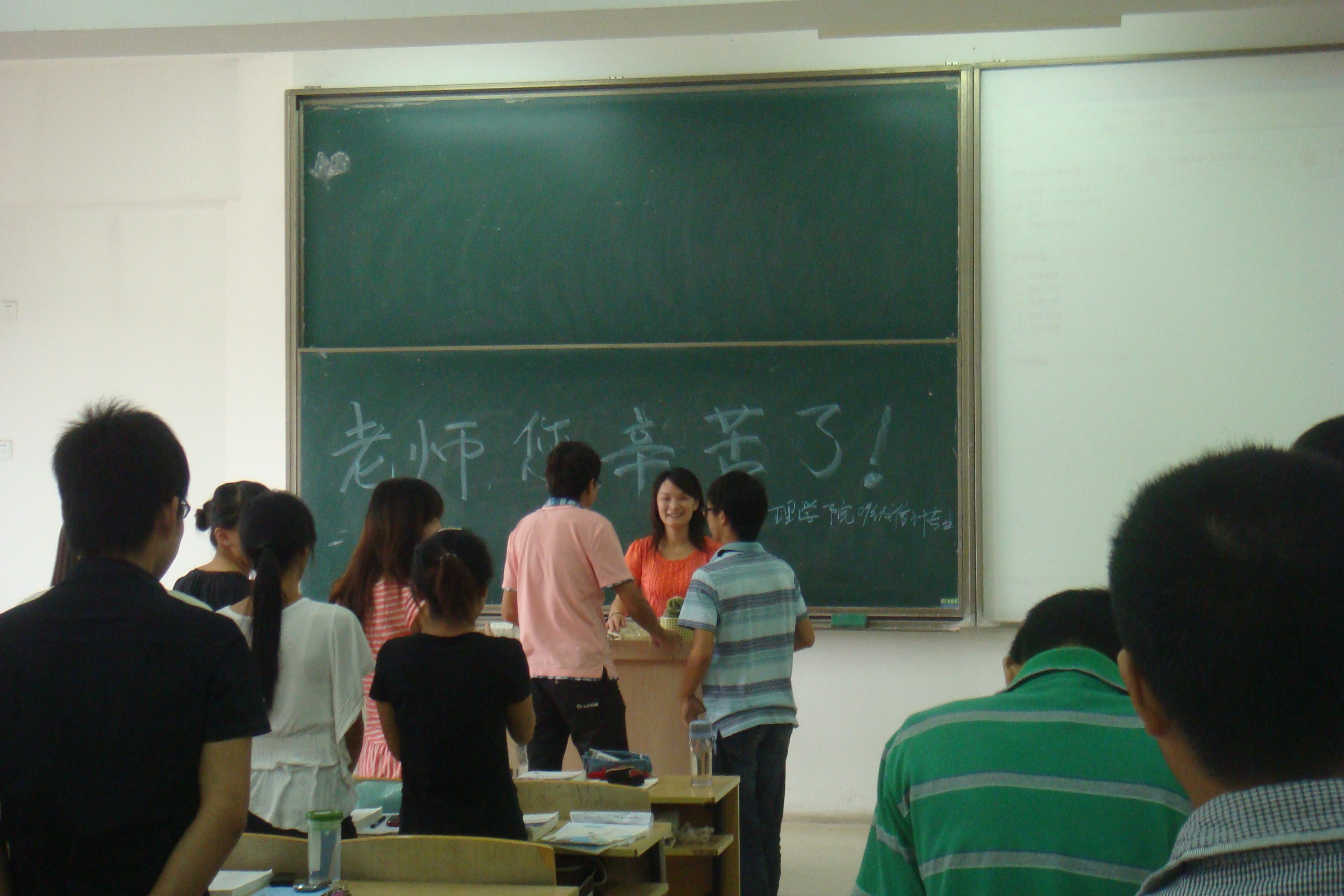 信息与计算科学专业的同学们精心为老师们挑选了一盆盆长势喜人、蕴意深刻的小盆景,将发自内心的感激话语编辑成一条条深深祝福的短信在教师节当天发送给老师们,在课堂上全体起立向老师致敬,一声声整齐响亮的“老师,您辛苦了!”表达着同学们对老师们的浓浓的敬意;统计专业的员工则号召同学们在教师节到来前的一周内,每一门课程尽自己所能完成一份干净、整洁、质量高的作业上交,并在作业后面附上自己对老师的节日祝福,还根据每位老师的性格、教学风格,给每位老师评定了“最幽默老师奖”、“最淡定老师奖”等个性奖项并颁发了小奖状;应用物理专业的员工则给每位老师准备了班级的影集作为教师节礼物,向通过班级合影中同学们各种不同的笑脸告诉老师:因为您,我们才能如此快乐地学习!