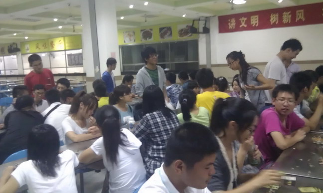 9月12日18:30,员工会全体员工干部在南二食堂二楼布置现场,桌子摆上了瓜子、月饼、糖果,饼干以及各种游戏道具迎接新生的到来。七点半,大一新生陆续到达,新生与学长学姐迅速熟悉起来,学长学姐们分布在各个新生群体中与他们交流,传授经验,和他们一起游戏。