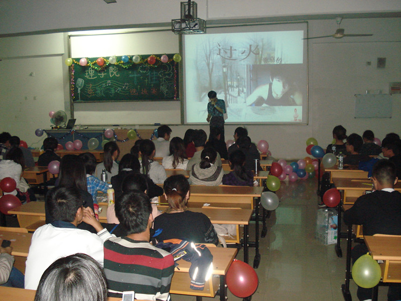 五颜六色的气球以及彩带将教室装点成欢乐的小天堂,伴着优美的旋律,比赛正式开始,观众们个个热情高涨,挥舞着手中的荧光棒为参赛的选手加油鼓劲,《红玫瑰》的情愫荡漾,《菊花台》的韵味悠长,《三寸天堂》的感人至深,《这就是爱》的酣畅淋漓……同学们沉醉在歌声,融化在欢乐的海洋中,掌声笑声久久不能停歇。