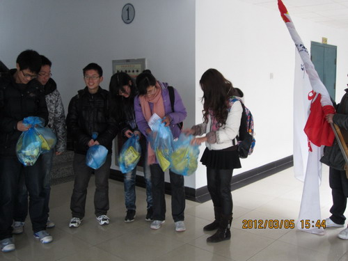 3月5日下午,在太阳成集团tyc分团委的指导下,太阳成集团tyc“铭理”青年志愿者协会组织开展了“迎校庆、学雷锋、清除校园牛皮癣”的活动,2011级应用物理学专业的全体同学以及青志协的志愿者们参加了此次活动。