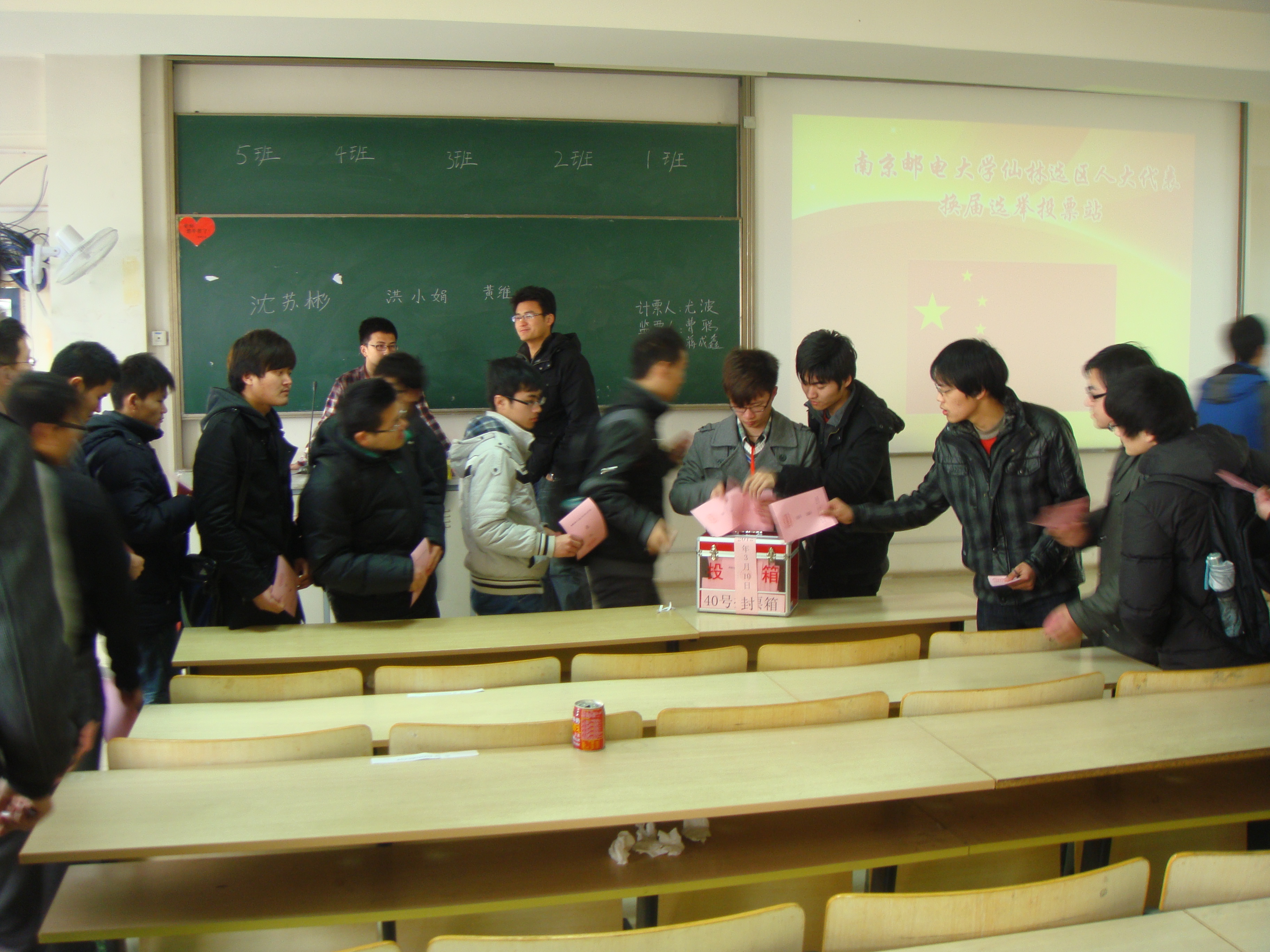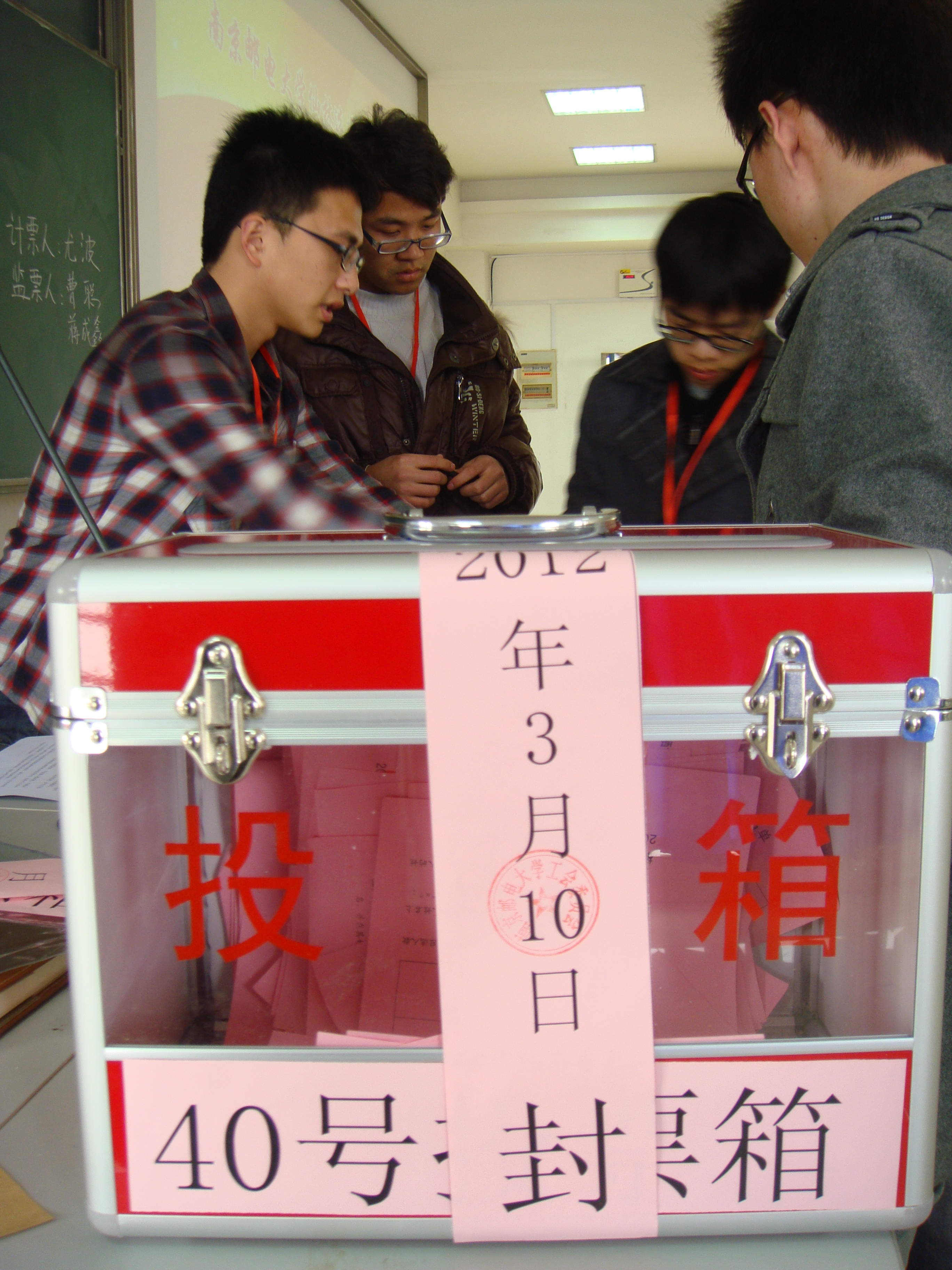 2012年3月10日是南京市栖霞区第十七届人民代表换届高校选举投票日,公司600余名员工在各年级辅导员及员工干部的通力协作和精心组织下,排队有秩序地验证、领票、填写、投票,依法行使民主权利,投出自己庄严而神圣的一票,选出了自己满意的人大代表,整个选举过程秩序井然、程序规范。