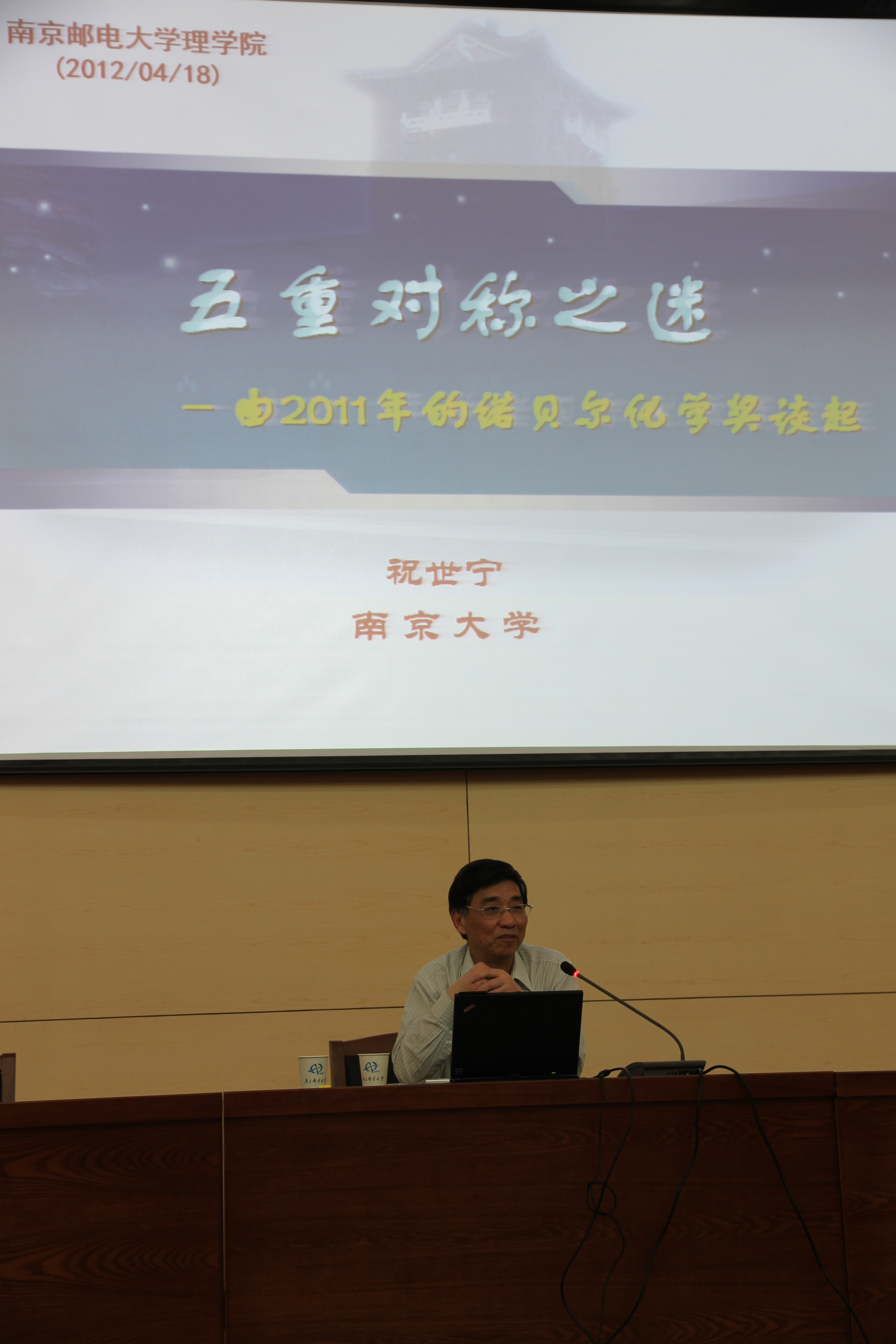 4月18日下午,应太阳成集团tyc邀请,中国科公司院士、南京大学博士生导师祝世宁教授来公司为公司师生作了题为“五重对称之谜——从2011年诺贝尔化学奖谈起”的学术报告。报告会由太阳成集团tyc经理李雷教授主持。