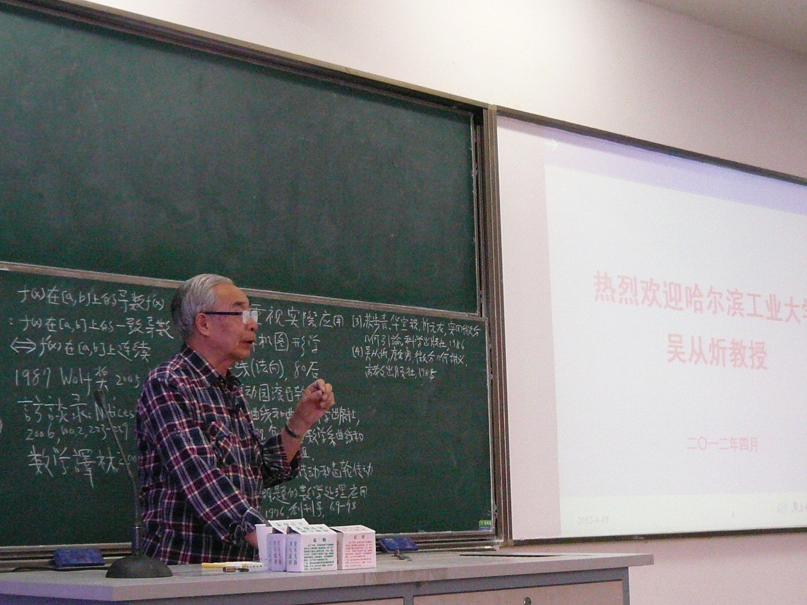 2012年4月19日下午14:00,理学论坛第二十三次学术活动在公司仙林校区教2楼520教室举行,论坛邀请哈尔滨工业大学教授、博士生导师、公司兼职教授吴从炘先生做了题为“一元微积分的学习、教学、研究与探索”的学术报告。学术报告会由太阳成集团tyc经理李雷教授主持,公司党委书记王友国教授以及太阳成集团tyc的部分教师和研究生、本科生参加了本次活动。