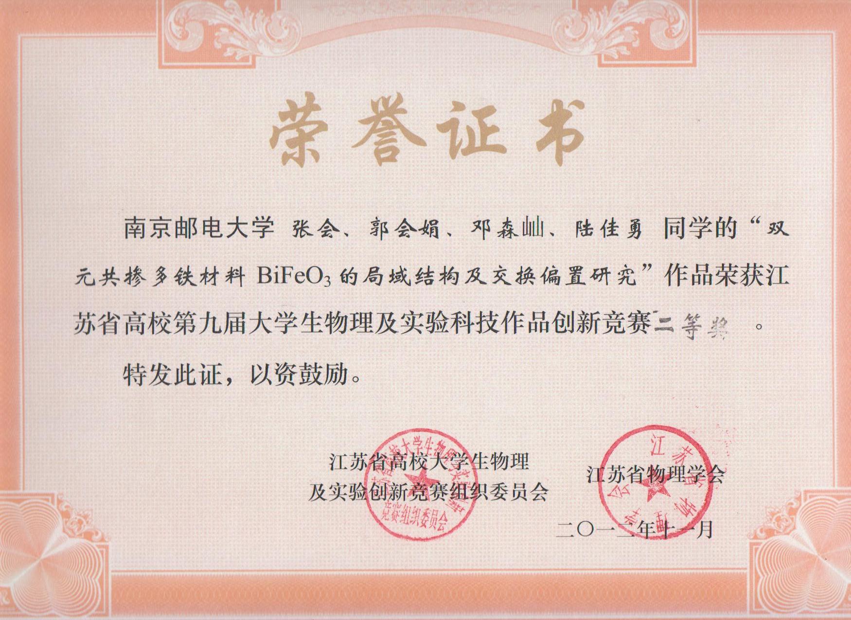 江苏省高校第九届老员工物理及实验科技作品创新竞赛于2012年11月9~11日在苏州大学落下帷幕。本次比赛由江苏省高校老员工物理及实验创新竞赛组织委员会主办,江苏省物理学会、苏州大学、苏州市科学技术协会、苏州物理学会承办,全省共有南京大学、东南大学等35所高校210项参赛作品进入决赛。