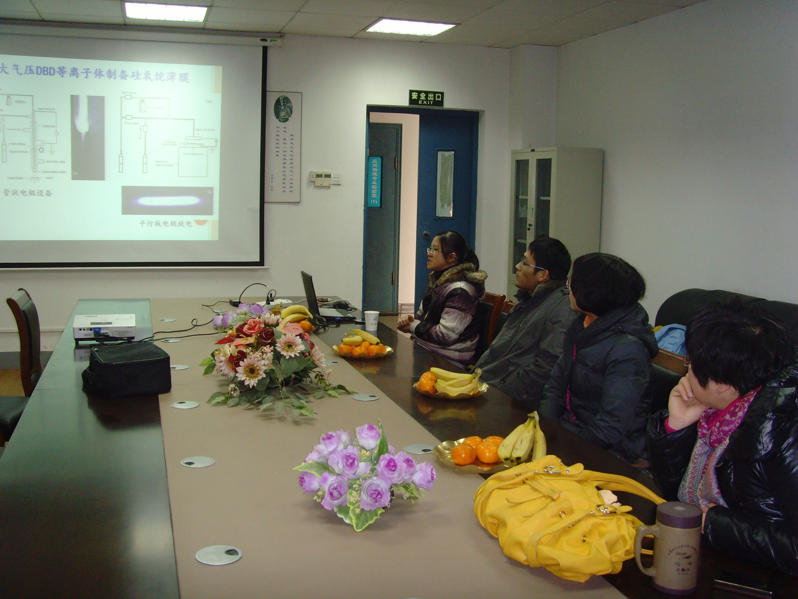周澜老师在报告中首先介绍了等离子体对改进聚四氟乙烯材料表面性能的应用,接着介绍了使用大气压等离子体技术合成硅氧烷薄膜,并介绍了硅氧烷薄膜在生物医学领域的应用前景。参加活动的老师进行了热烈讨论。