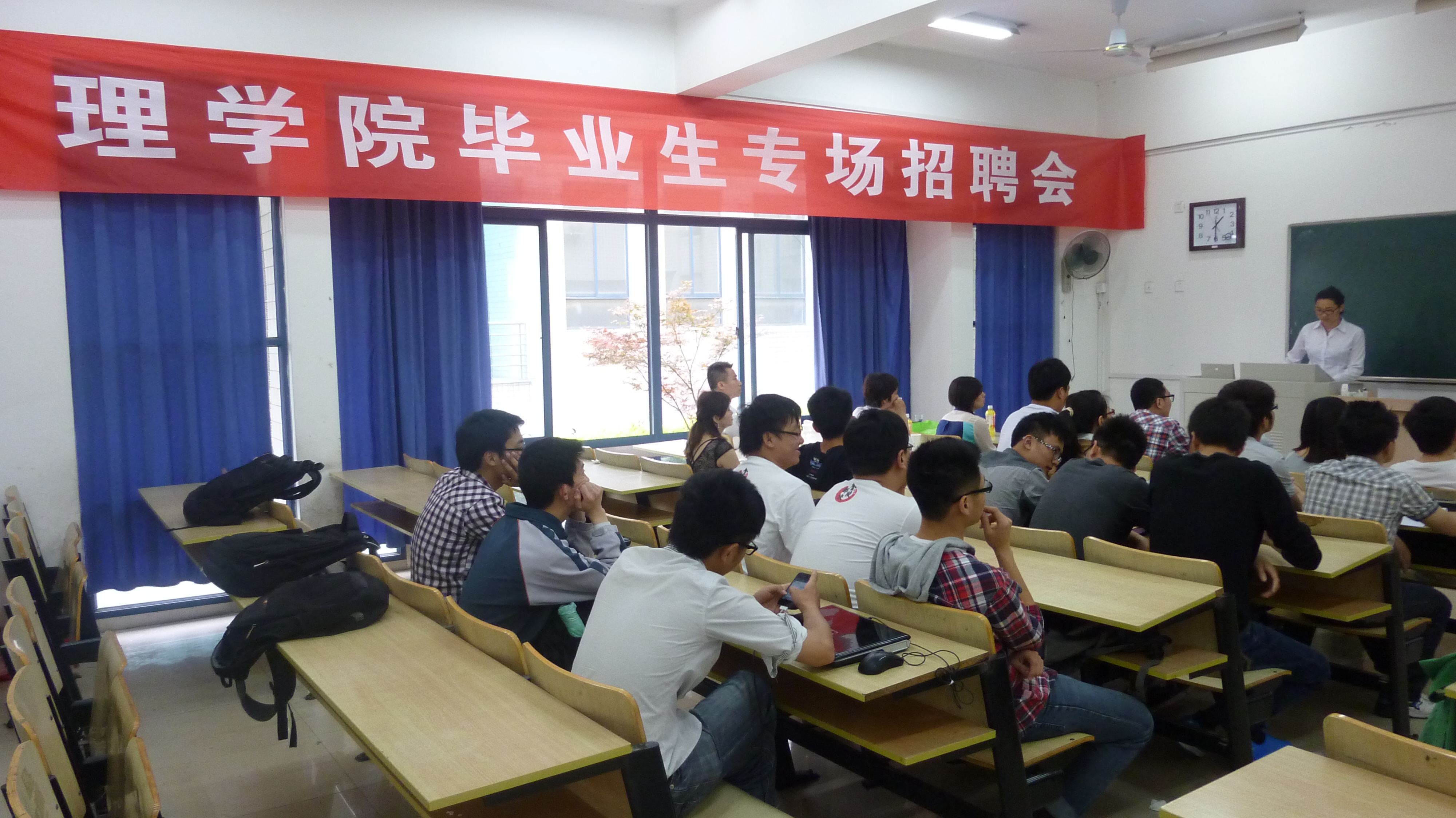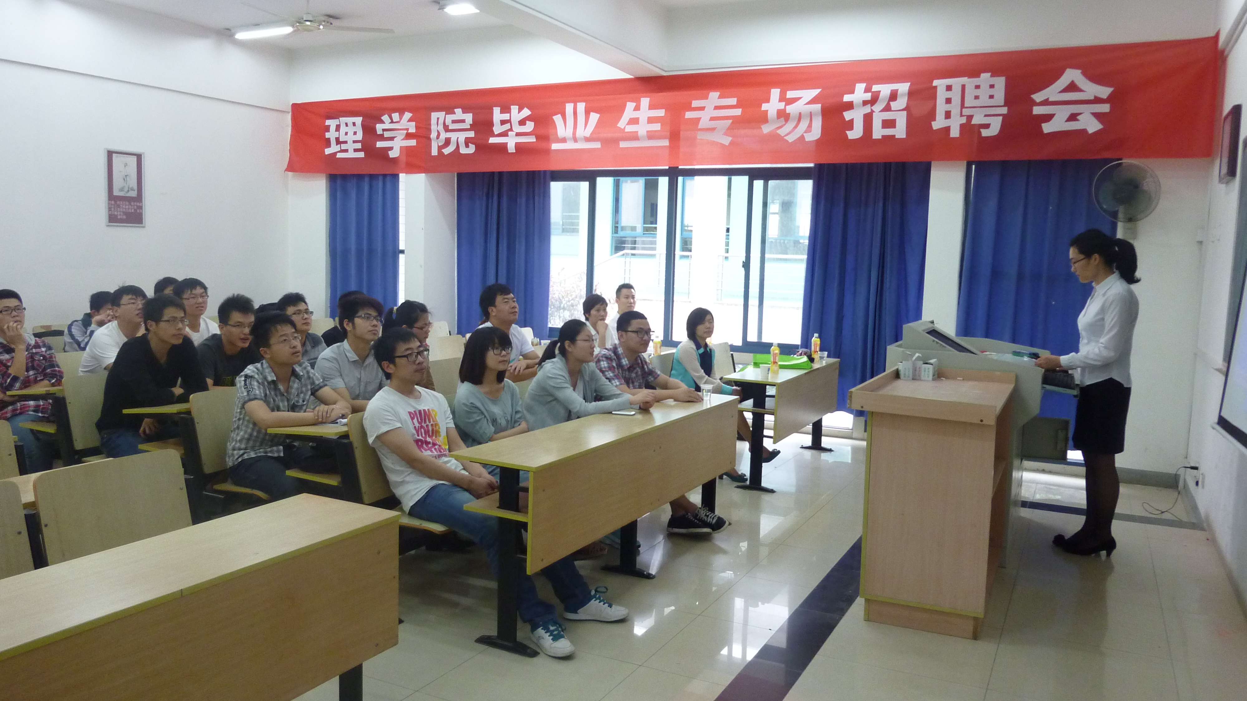 5月15日下午,太平洋人寿保险公司江苏分公司在太阳成集团tyc举办毕业生就业专场招聘会,公司区域经理谢堃等公司工作人员和公司党委副书记高翔、毕业班辅导员黄洁以及尚未落实工作的2013届毕业班同学参加了招聘会,招聘会由黄洁老师主持。