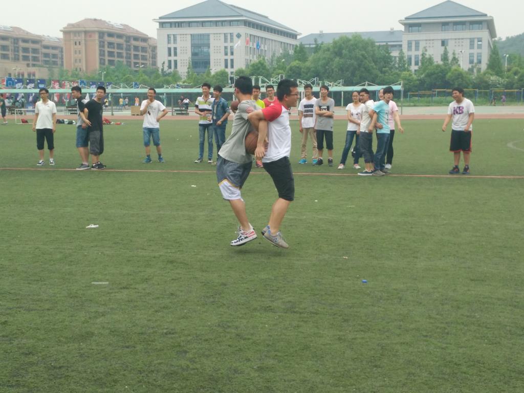 下午三点,比赛准时开始。首先进行的是大一同学们的“心心相印”比赛,由于大一的同学们是第一次参加比赛,大家都难免有一些生疏和紧张,随着哨声的响起,比赛开始,大家马上投入到了紧张的比赛中去,每一对参赛同学都紧紧得夹着篮球,迅速得向终点线移动着,同学们又要护紧篮球又要快速跑的动作引得在场的同学笑声阵阵,比赛又紧张又搞笑,迅速得吸引了大量的同学围观。在大一的同学们进行了比赛后,大二的同学们开始了比赛。同大一的同学们相比,大二同学们的动作就显得娴熟了不少,速度也比大一的同学们快了许多,因此大二的同学们就更注重速度的比拼,比赛现场的氛围顿时紧张了起立。比赛也变得激烈了许多。