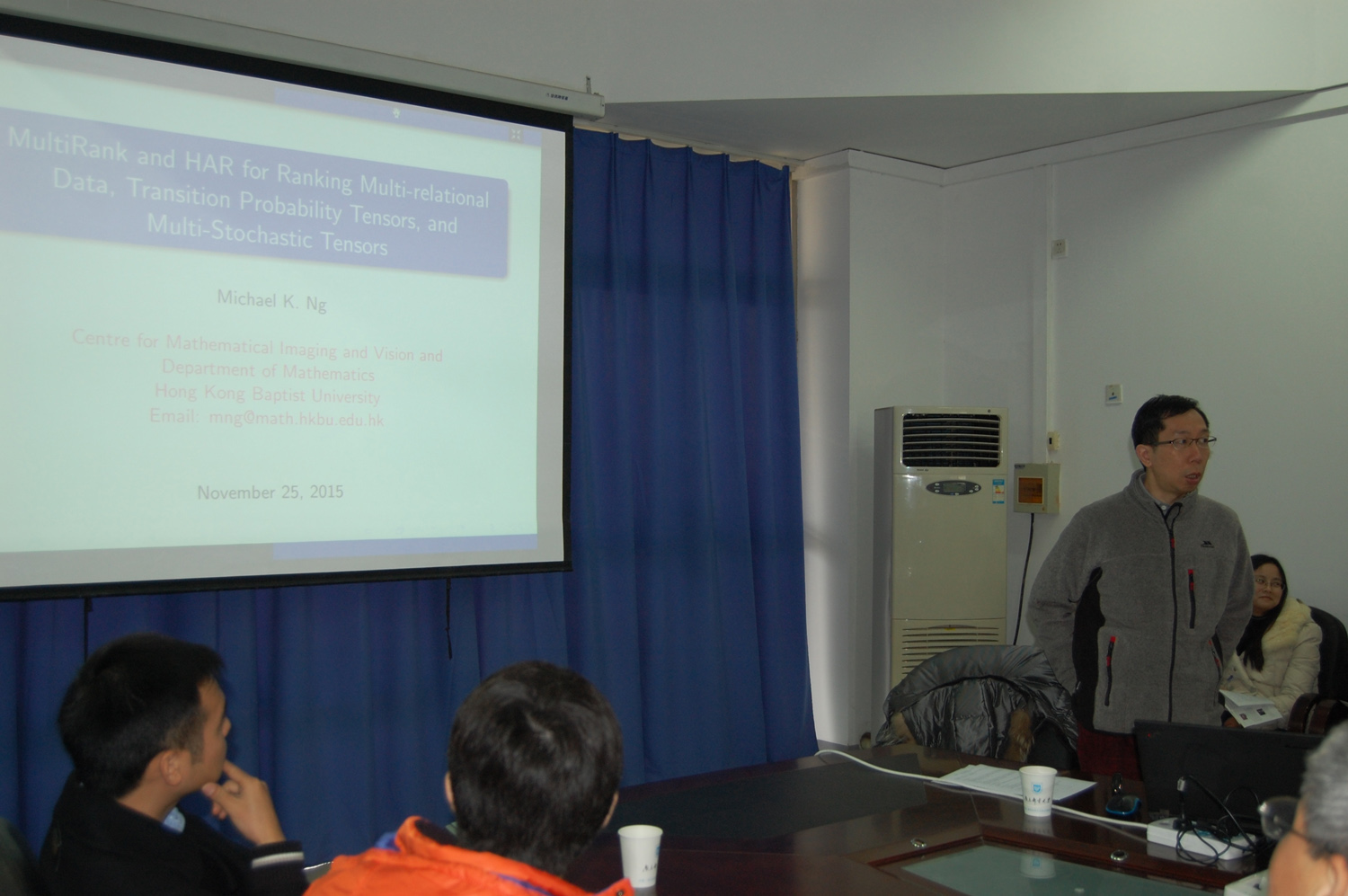 交流会后,吴国宝教授结合自己的研究兴趣和领域,做了题为“Tensor Computation and Applications(张量计算理论与应用)”的学术报告,吴教授介绍了这一领域最前沿的研究成果,并指出,Google公司在数据搜集、信息检索和图像处理等核心算法中都巧妙地运用到了这一理论。吴教授的报告深入浅出,内容始终紧扣实际问题,与会听众收益匪浅。报告会后,吴国宝教授和听众就双方感兴趣的问题进行了深入的交流和探讨。报告会由李雷经理主持。