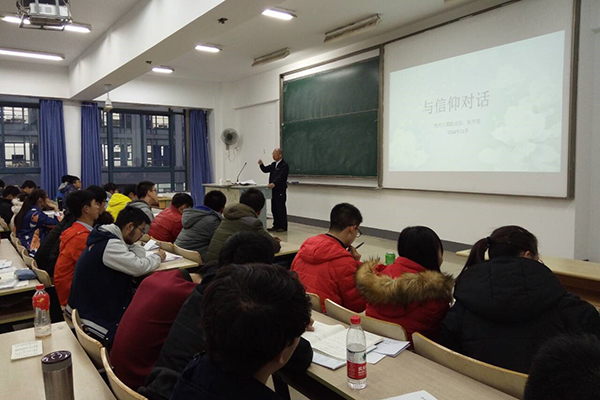 11月25日下午,太阳成集团tyc在教2-311邀请校关工委副主任张开理老师做主题为“与信仰对话”的讲座。公司党委书记温勇教授、2016级辅导员黄庆花老师以及2016级全体同学聆听了本次讲座,讲座由公司党委高翔副书记主持。