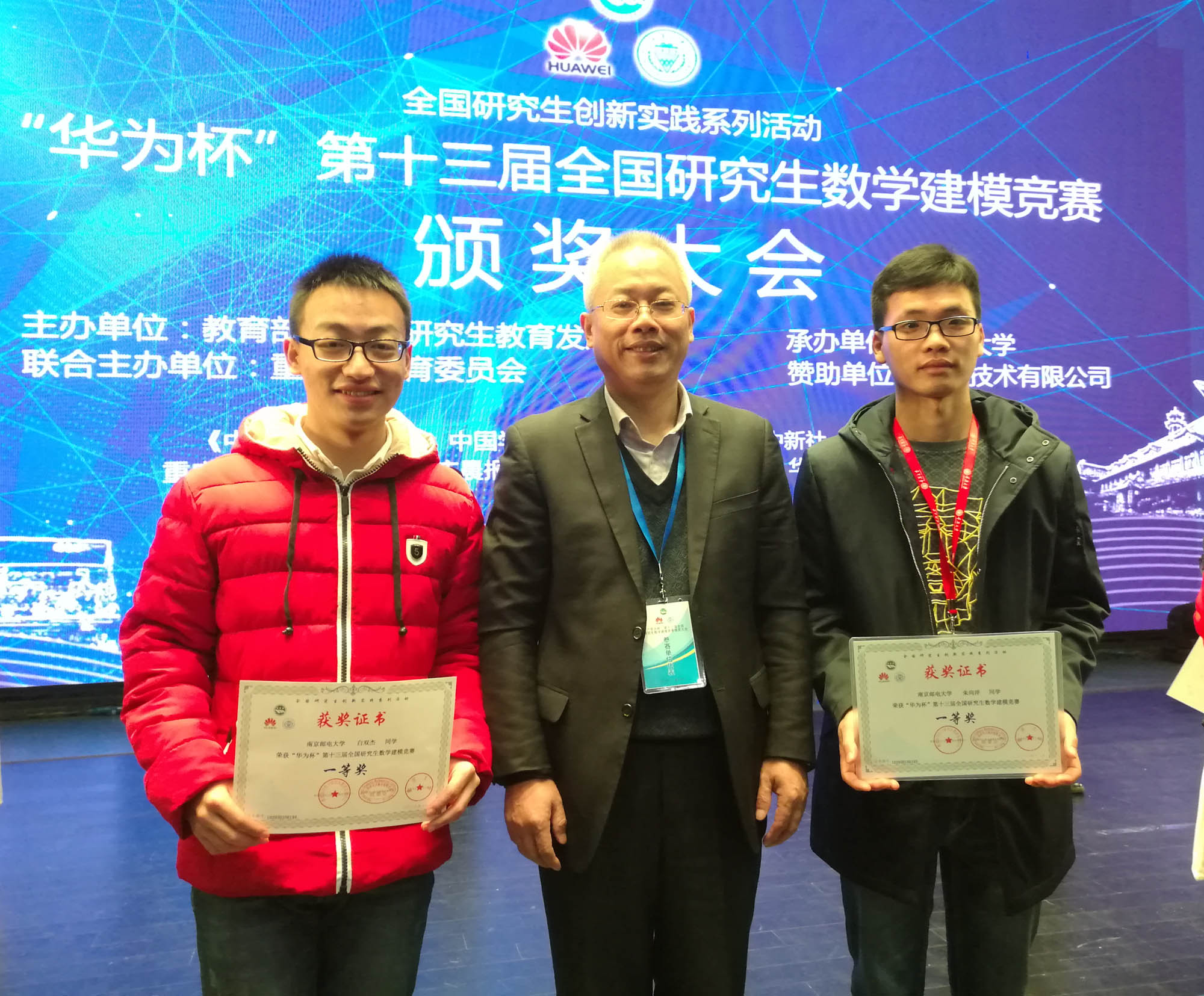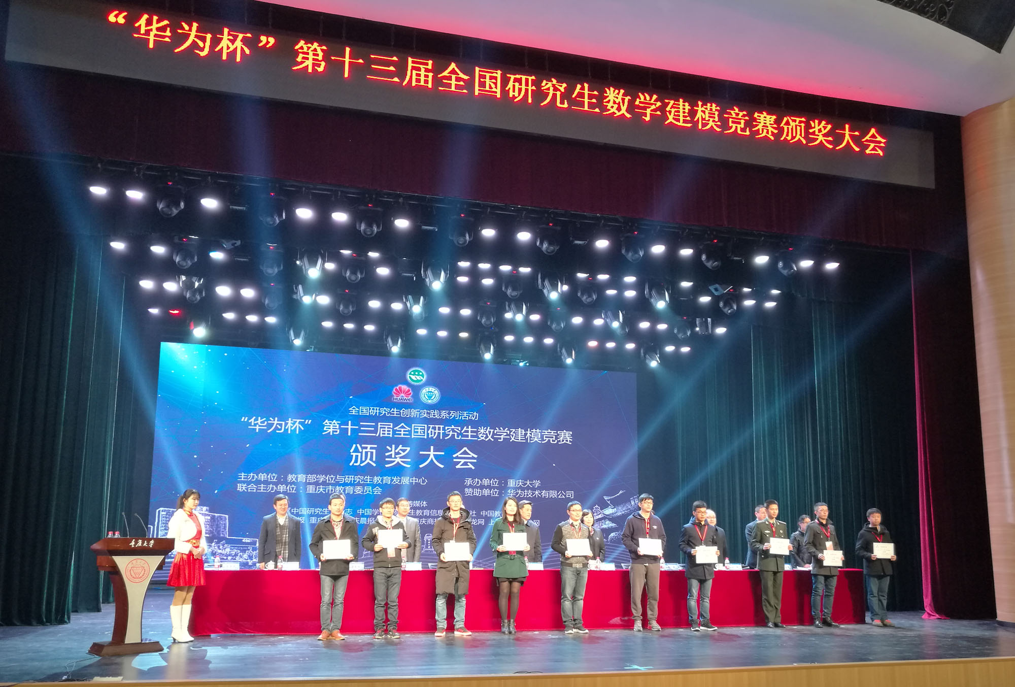 2016年12月10-12日,“华为杯”第十三届全国研究生数学建模竞赛颁奖大会在重庆大学举行,太阳成集团tyc副经理兼统计学系主任唐加山教授、全国一等奖获得者代表计算机公司朱向洋同学和白双杰同学应邀参加颁奖大会并代表公司领奖。