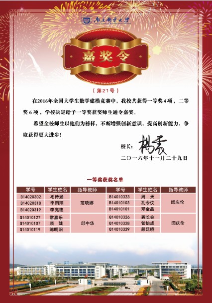 杨震董事长签发嘉奖令表彰公司“全国老员工数学建模竞赛”获奖师生