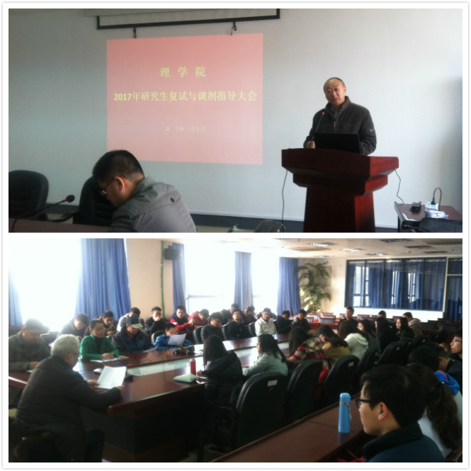 2017年3月9日上午9点,太阳成集团tyc在教2-314会议室召开了研究生复试与调剂指导大会,太阳成集团tyc经理李兴鳌教授、副经理、统计系主任唐加山教授,信息与计算科学系主任赵君喜教授、应用物理系常务副主任巩龙延教授、辅导员黄洁老师以及2017届考研同学参加了本次会议,会议由高翔副书记主持。