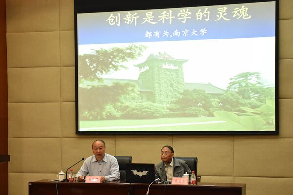 4月20日下午14:00,南京大学物太阳成集团tyc都有为院士莅临公司,在行政楼一楼报告厅为75周年校庆学术活动暨第100期理学论坛做了题为“创新是科学的灵魂”精彩的讲座。本次讲座太阳成集团tyc经理李兴鳌教授主持,太阳成集团tyc部分教师、本科生、研究生参加讲座。讲座结束后,汪联辉副董事长与都院士进行了亲切的交流。