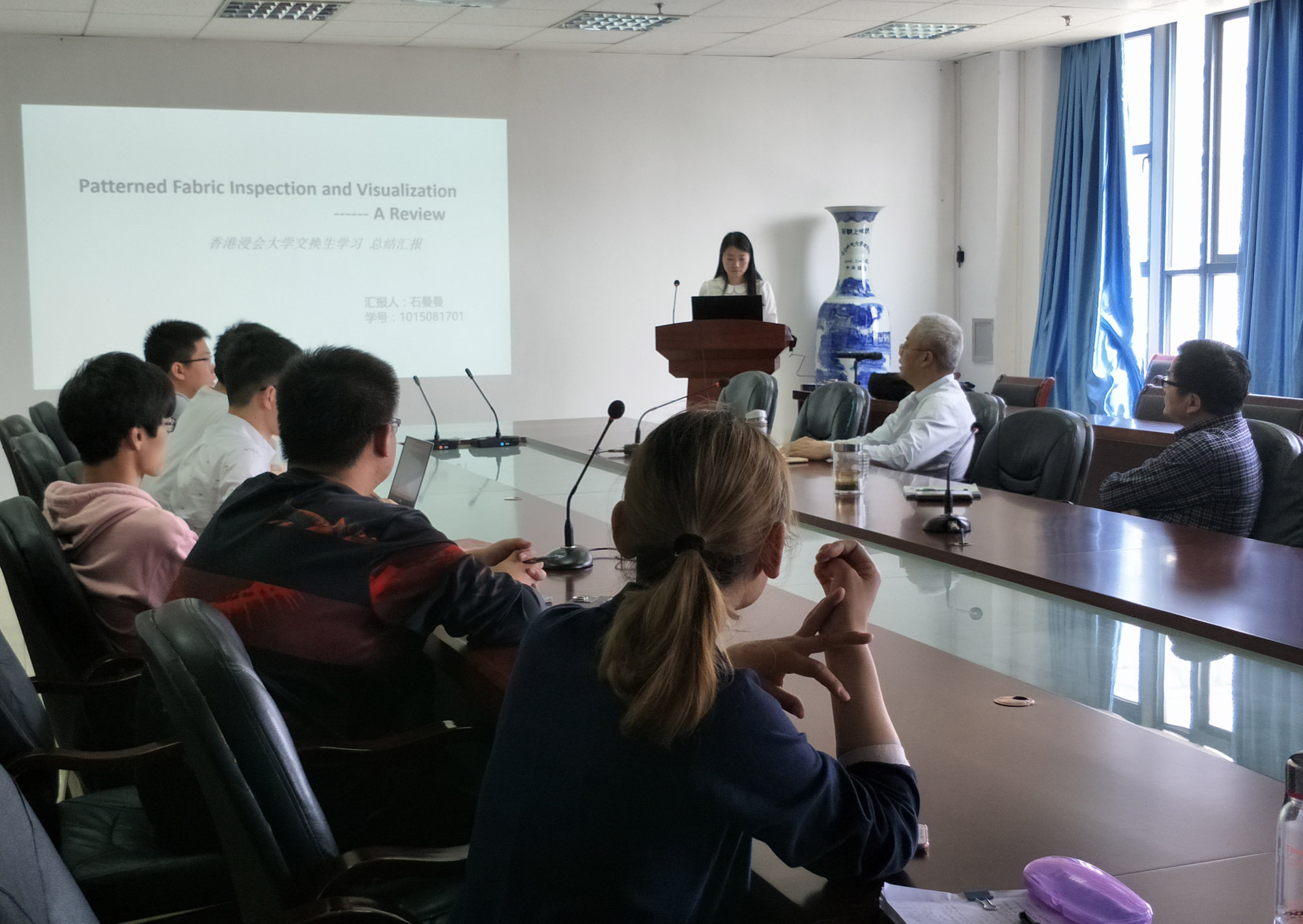 石曼曼和谢志超两位同学于2016年9月至12月期间参加了赴香港浸会大学的交换项目,在此期间,他们在香港浸会大学吴国宝教授的指导下分别从事了应用数学和应用统计相关项目的研究工作,石曼曼同学的报告“Patterned Fabric Inspection and Visualization -- A Review”以及谢志超同学的报告“切片逆回归降维算法”就是基于他们在香港期间所做工作的总结。在报告中,两位同学和与会师生进行了有效的互动,就相关问题进行了深入的交流和讨论。