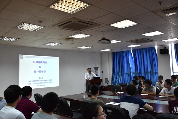 6月6日下午,中国科公司院士、南京微结构国家实验室主任、南京大学固体微结构物理国家重点实验室学术委员会主任邢定钰教授莅临公司,在教二314报告厅作题为“巨磁电阻效应和拓扑量子态”的学术报告。杨震董事长与邢院士进行了深入交流,太阳成集团tyc相关负责人、部分教师、研究生和本科生聆听讲座,讲座由太阳成集团tyc经理李兴鳌教授主持。