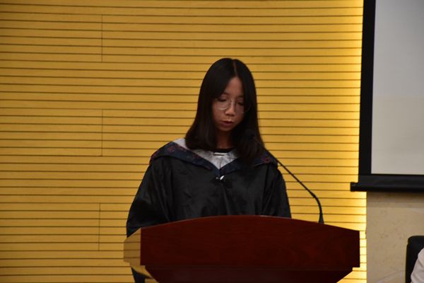 教师代表武婷婷老师、员工代表、2017届校优秀毕业生缪芸同学、家长代表、应用统计学专业刘格格同学的父亲刘训勇先生先后上台发言。