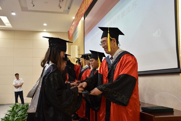 公司党委书记温勇教授代表公司学位评定分委员会宣读了授予学士学位的决定。李董事长和公司学位委员会成员为获得学士学位的同学们颁发学位证书并拨流苏,场面庄重而温馨。