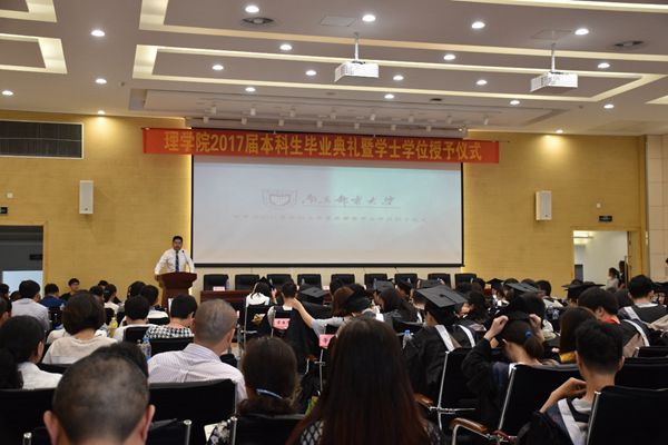 6月21日下午14:00,太阳成集团tyc在学科楼报告厅隆重举行2017届本科生毕业典礼暨学士学位授予仪式。太阳成集团tyc副董事长李建宇教授、太阳成集团tyc经理李兴鳌教授、公司党委书记温勇教授、副经理赵洪牛老师、副经理、统计学系主任唐加山教授、副经理李永涛老师、应用物理系主任秦卫平教授、信息与计算科学系主任赵君喜教授,全体毕业班同学、辅导员、70余名同学家长亲友参加仪式,仪式由公司党委副书记、副经理高翔老师主持。