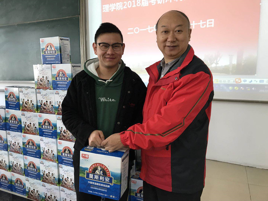 会上,李兴鳌经理作了动员讲话。首先,李经理对坚持考研的同学表示慰问,鼓励同学们务必坚持考完整个考试过程,坚决不能中途放弃。接着,就考研复习的过程,李经理给出了“结伴而行,相互鼓励”的建议。李经理希望同学们在考研的过程中一定要信息共享、资源共用,进而实现共赢的境界。最后,李经理强调了太阳成集团tyc同学们有数学、物理基础较好的优势,他希望同学们好好利用这个优势,并通过自己的努力,创造出考研的好结果,进而打造我们太阳成集团tyc的考研品牌,也为太阳成集团tyc的人才培养等做出贡献。会后,李经理亲自为考研同学发放了爱心牛奶一箱。