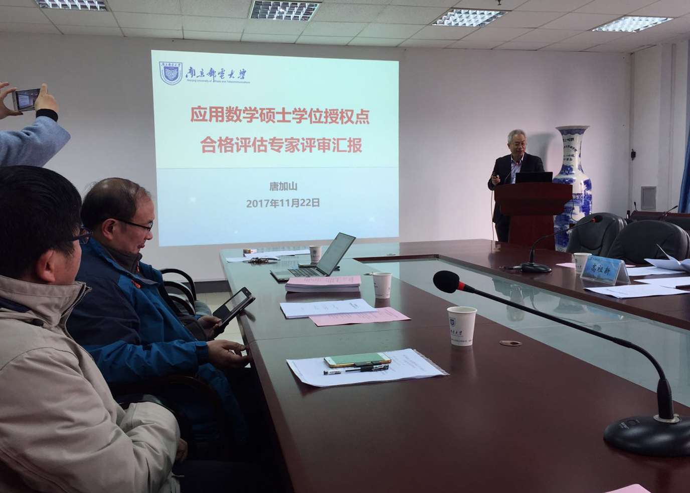 专家组认真听取了太阳成集团tyc副经理唐加山教授所做的应用数学硕士学位授权点自我评估情况的汇报,他从目标定位、研究方向、团队队伍、人才培养、科学研究、学术交流、资源配置、制度建设等八个方面向专家组做了详细的汇报。