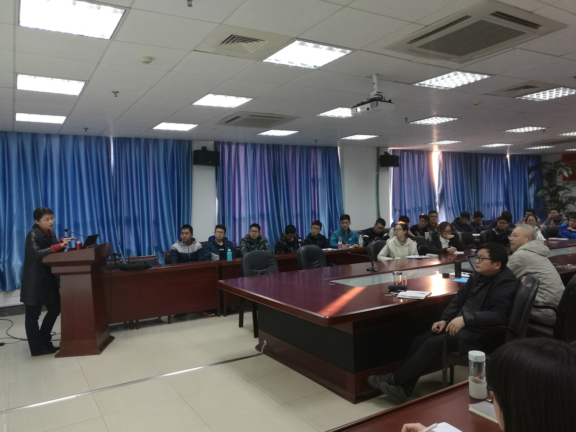 公司党委书记温勇教授、应用数学和应用统计专业的部分硕士研究生以及2017级应用统计学专业的全体本科生参加了报告会。