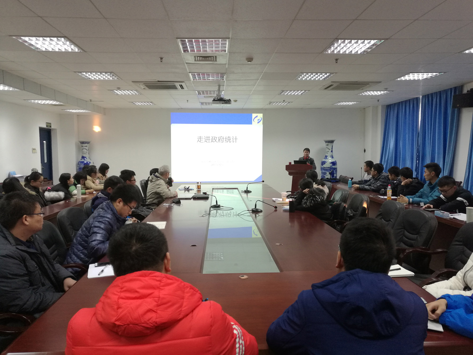 在报告中,端局长以实际工作的实践为基础,分别从政府统计的概念与特征,政府统计的功能与任务,政府统计的调查方法以及如何胜任政府统计工作岗位等四个方面详细介绍了政府统计工作的有关内容,端局长的报告准备充分,讲解透彻,重点突出,她的报告受到了听众的一致好评,报告会后,端局长详细解答了与会听众关心的热点问题。