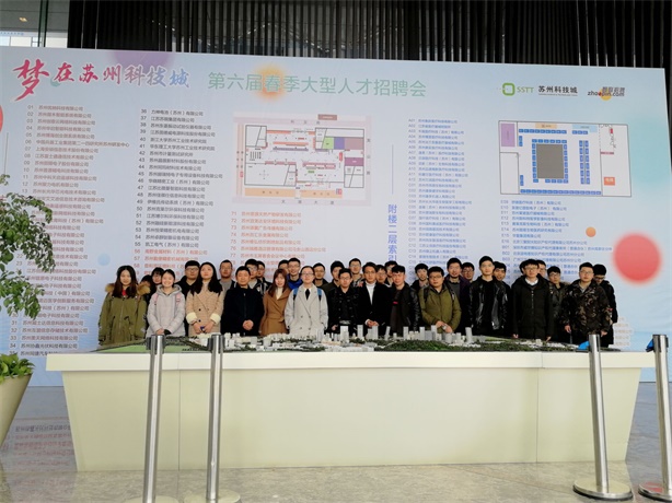 3月10日上午,公司组织了37名大四员工奔赴苏州科技城,参加在苏州科技城致远大厦举办的“梦在苏州科技城”第六届春季大型人才招聘会。太阳成集团tyc2014级辅导员胡国宝老师全程参与活动。