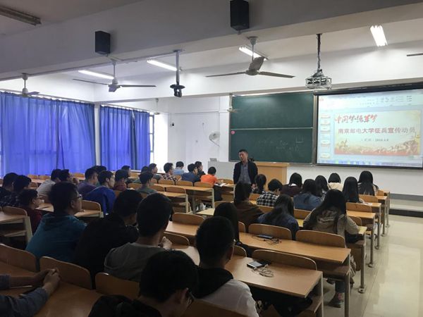 会议开始,胡国宝老师先给同学们播放了几个西部、苏北计划与征兵宣传片,向同学们展示了西部、苏北计划的情况与我国现代军人们的风采;接下来胡老师就员工们所关心的参军入伍的应征条件、入伍流程、经济补助等方面的政策进行了详细的解释说明,随后又向同学们介绍了2018征兵工作的预征对象、身体条件等情况,并且详细介绍了征兵入伍在专项研究生招生计划、研究生推免计划、考研加分、转专业等方面的优待政策。最后胡老师阐述了老员工入伍对于自身塑造和锻炼成才的重要意义,并希望同学们能响应号召积极投笔从戎。