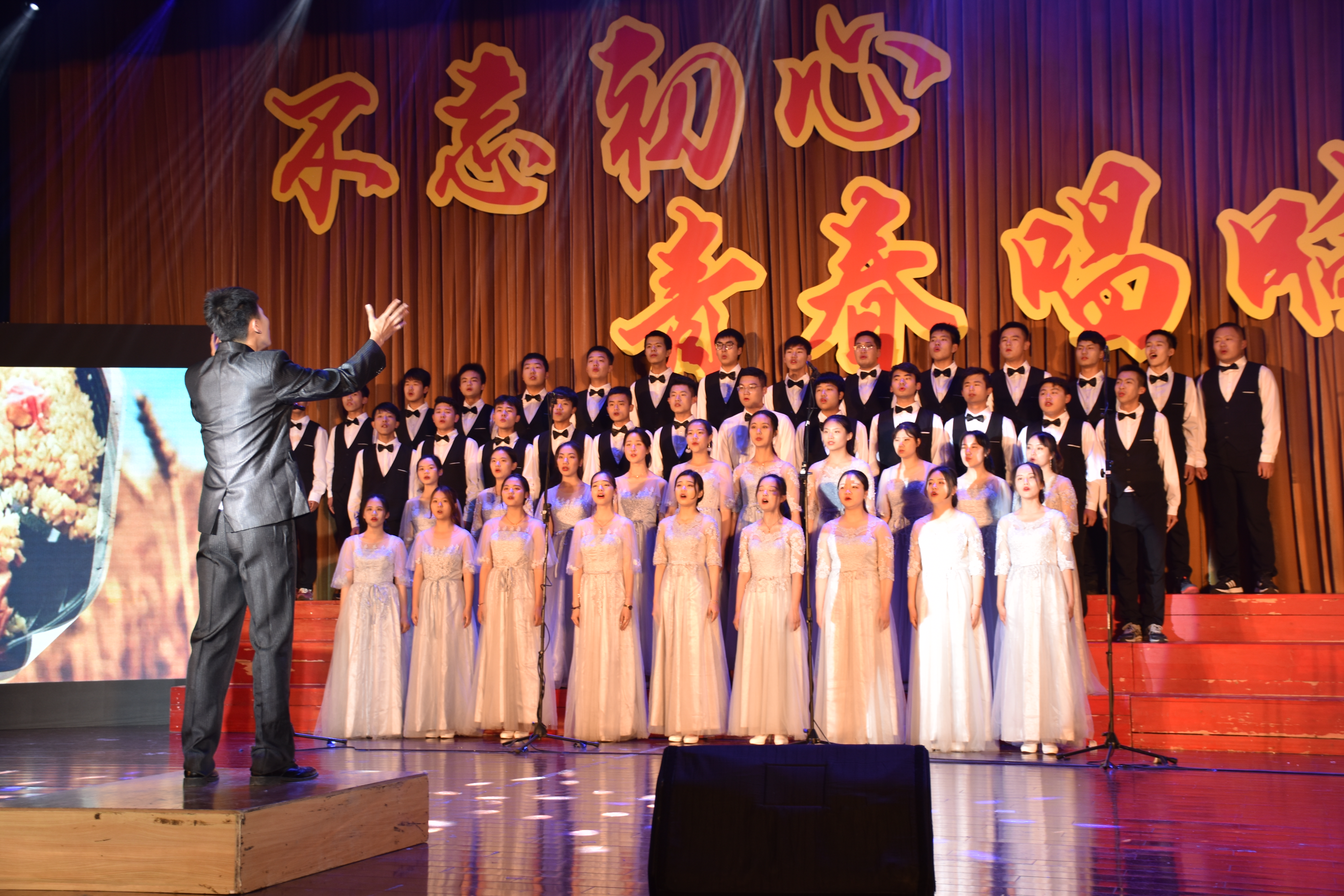 合唱准备期间,员工们踊跃报名参与比赛,在遴选的基础上,选定参与合唱的同学开始了为期近一个月的艰苦训练。从确定曲目,规格制式,到排练动作,统一服装,同学们利用课余时间努力排演,时刻以饱满的热情备战比赛。正式登台演出时,大家配合默契,发挥稳定,男女生交叉吟唱,一幅幅富有青春气息的画面如现眼前,展现了太阳成集团tyc青年学子爱国、活力、青春、向上的精神面貌。