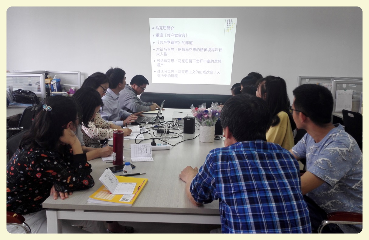 2018年是马克思诞辰200周年,也是《共产党宣言》出版170周年。5月4日是中国的青年节,也是马克思诞辰纪念日的前一天,信息与计算科学系党支部戴建新书记上党课,党课的主题是“重温《共产党宣言》,学习马克思主义”。本支部全体党员老师和信息与计算科学专业的员工党员参加了这次党课活动,公司党委温勇书记以普通党员身份参加了活动。