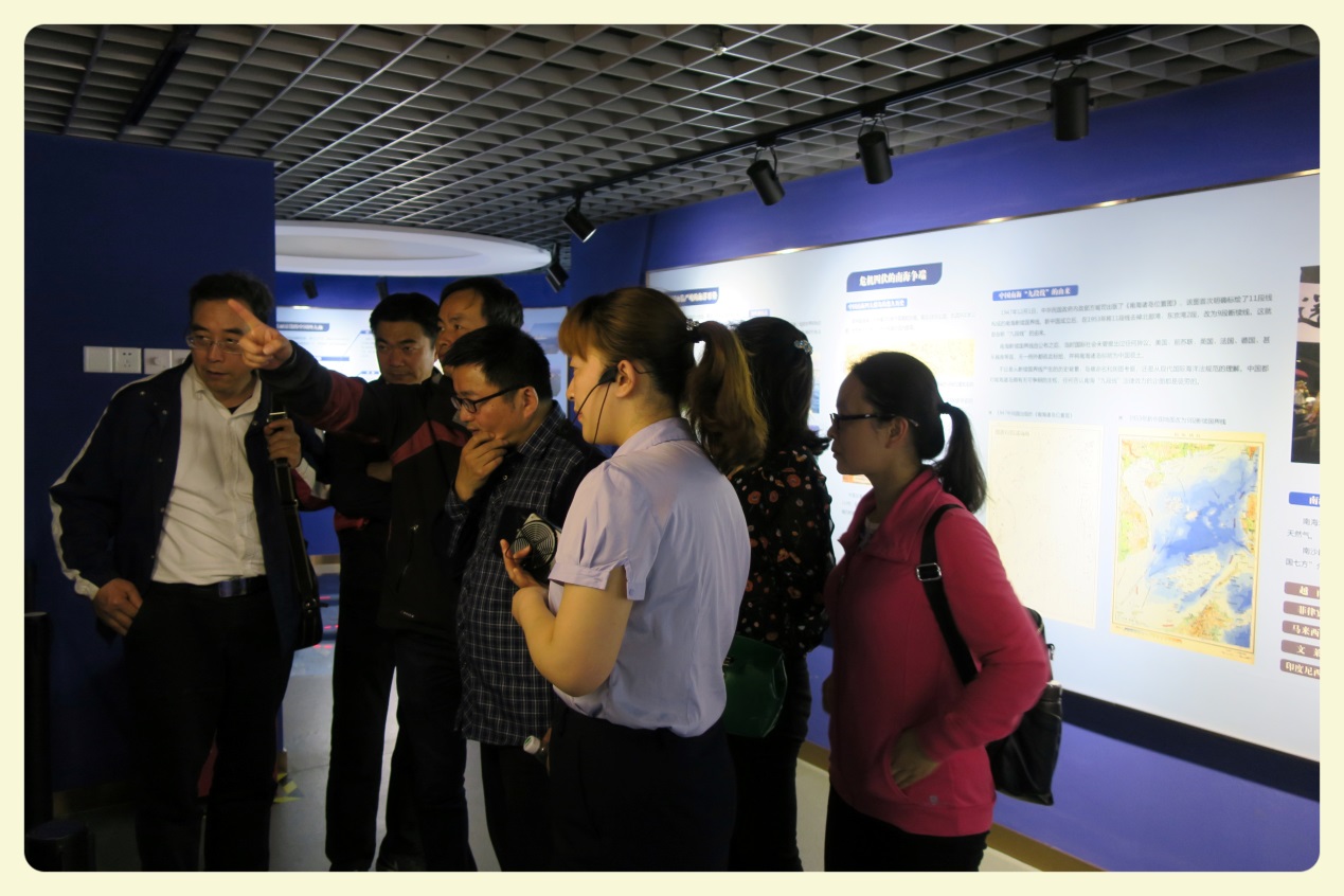 全体人员在讲解员郭老师的带领下先后参观了海洋历史、海洋形势、海洋资源、海洋国策、海军舰艇模型展台等版块。伴随郭老师的细致的讲解,结合海洋国防教育展馆运用的光、图、声、影像等全媒体技术以及模型、海洋生物标本等,大家比较全面地了解了海洋知识、海洋权益、我国的海洋资源和海防力量。