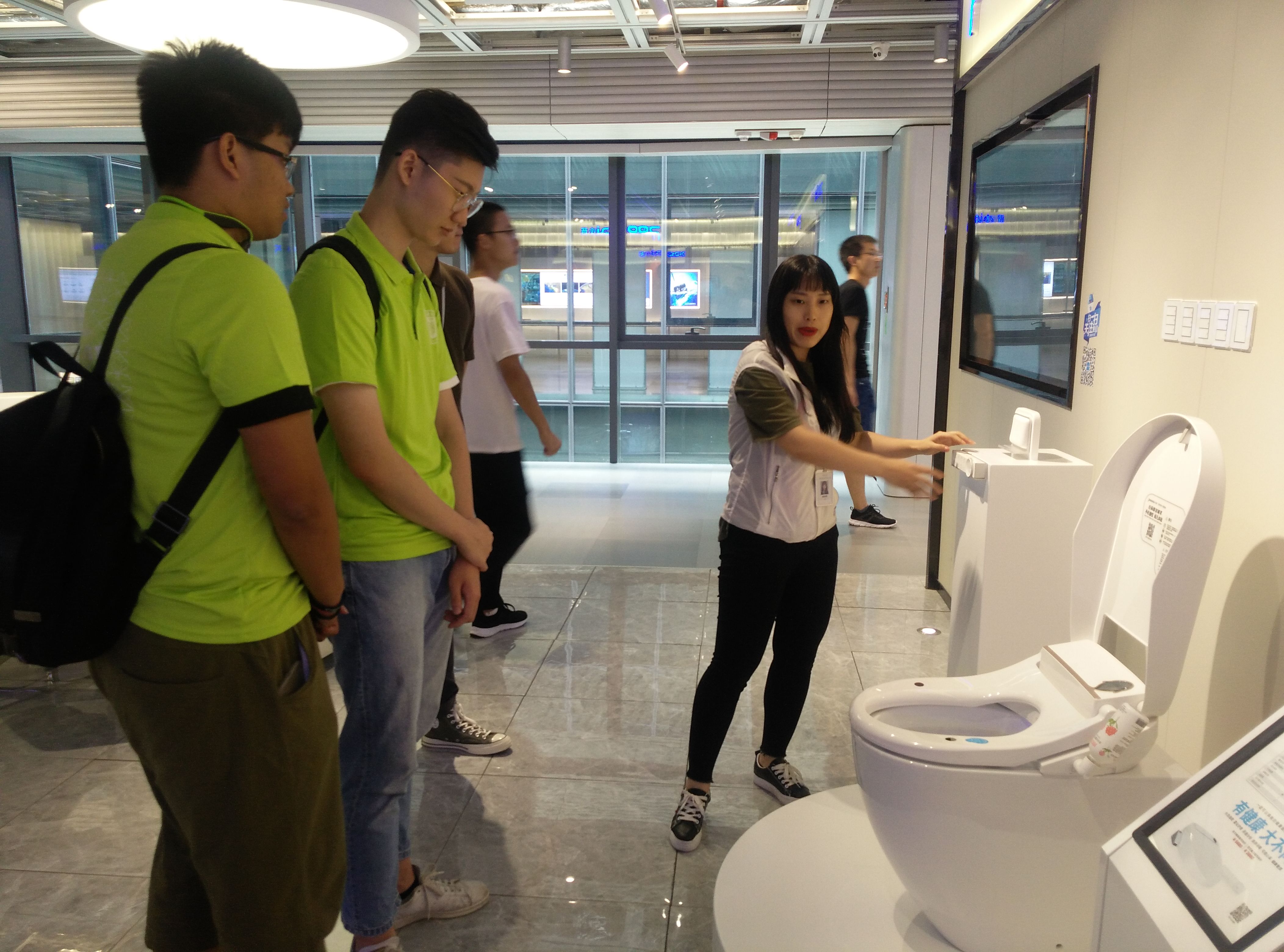 座谈交流后,实践团一行乘坐国内第一部声光电梯--“未来舱”参观了CEEC展区。展品琳琅满目,包括各行各业的最新成果,既有中外品牌消费电子,也有中科院优秀科技成果以及代表着中国智造的小普未来科技智能马桶等等,科技创新改变世界、改变生活,尽在眼前,改革开放发展的效应,变得触手可及。在“超维空间”,记忆随着时间的固态化变成时光胶囊陈列于此,这个“时间”对于深圳而言就是其发展起来的根基,亦是其往昔的峥嵘岁月。
