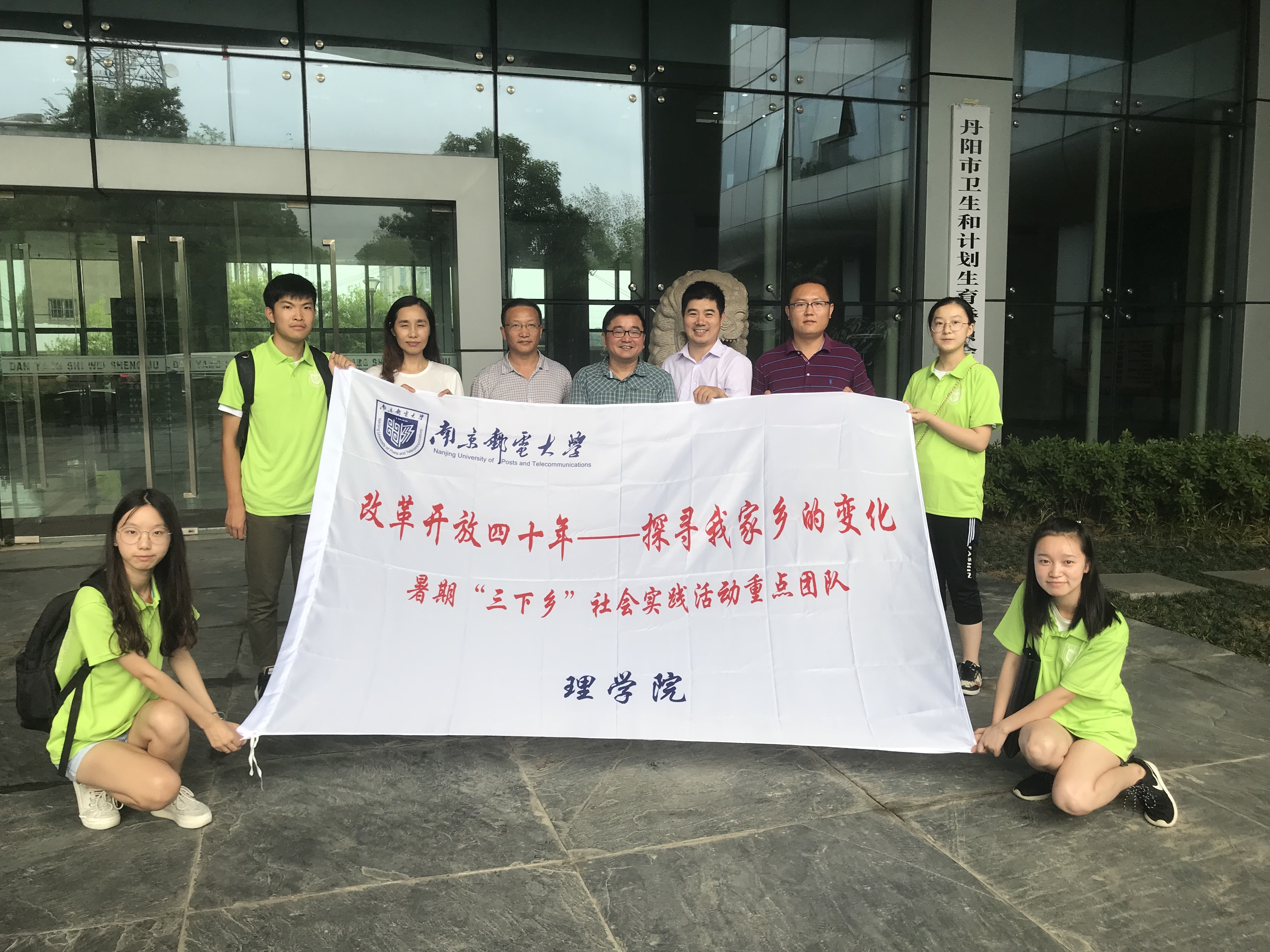 实践团队首先来到丹阳市卫生和计划生育委员会,通过座谈交流、查阅资料等形式,调研改革开放进程中丹阳市人口的发展与变迁及其带来的影响。改革开放进程中,丹阳市的人口出生率经历了由高到低并平稳发展的过程,人口红利的退减与人口老龄化的提升,影响着丹阳市经济产业由劳动力密集型向技术密集型的转变。发展靠改革,发展靠人才,近年来丹阳市着力培养和吸引高素质人才,社会发展的驱动力逐渐由人口红利向人才红利转变过渡。同时,改革发展的成效也使政府实施了一系列例如建立“尊老金”制度、实行安康关爱行动等惠老措施,使居民乐享改革的利好。