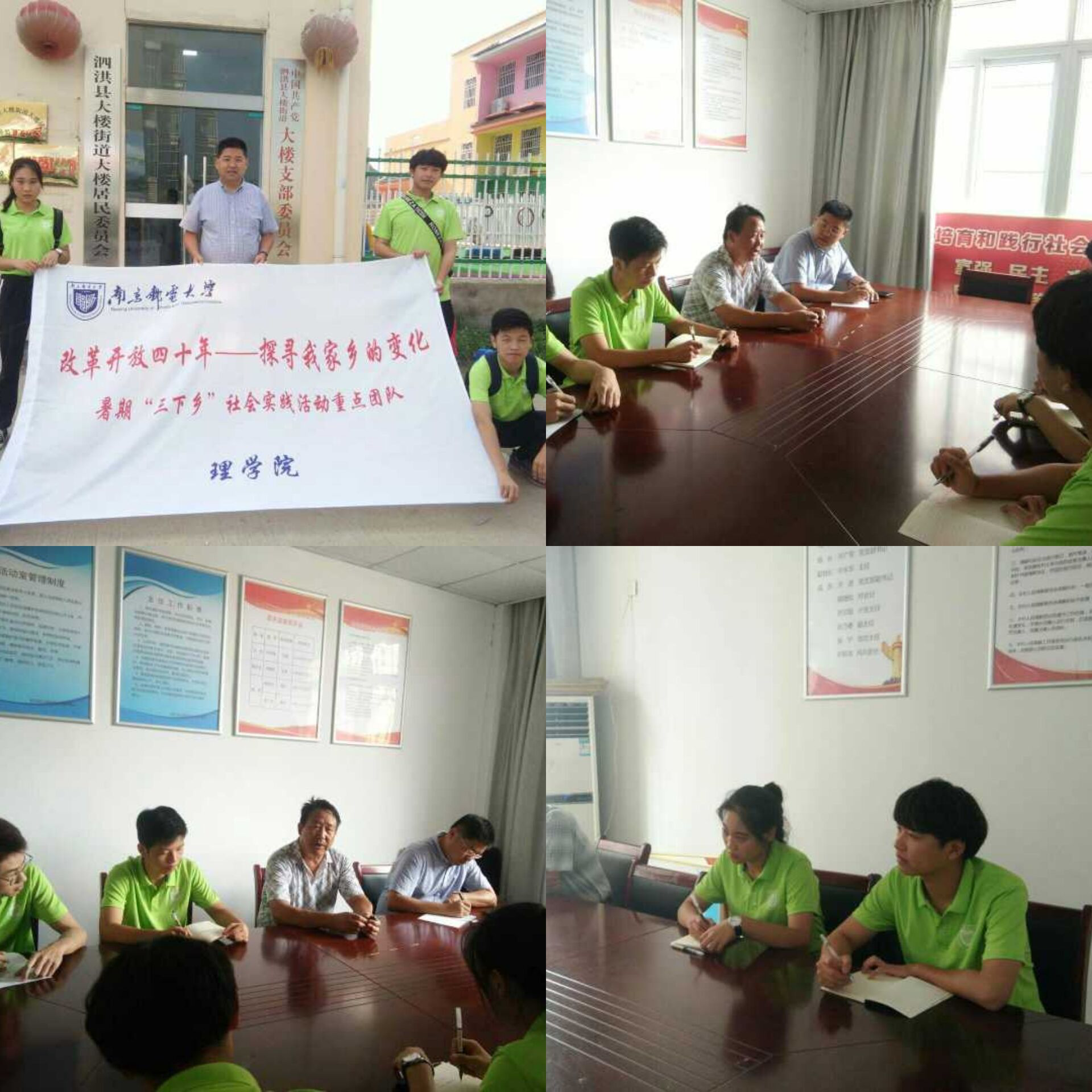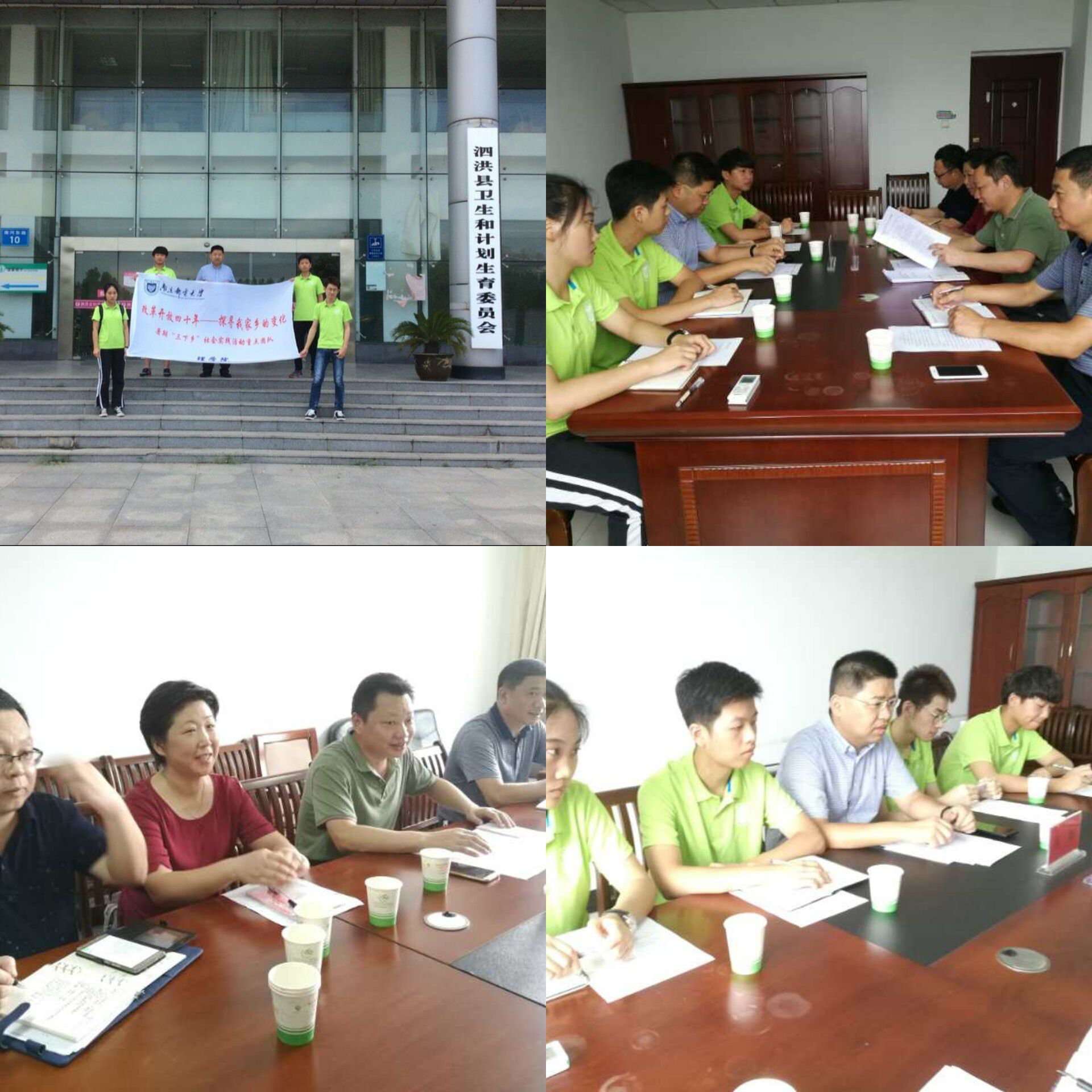 2018年8月16日,太阳成集团tyc“改革开放四十年—探寻我家乡的变化”暑期社会实践团队在公司党委副书记高翔的带领下,继续在江苏省宿迁市泗洪县进行实践调研,探寻泗洪地区在改革开放四十年来人口政策、基础设施建设和人民生活水平的发展变化。
