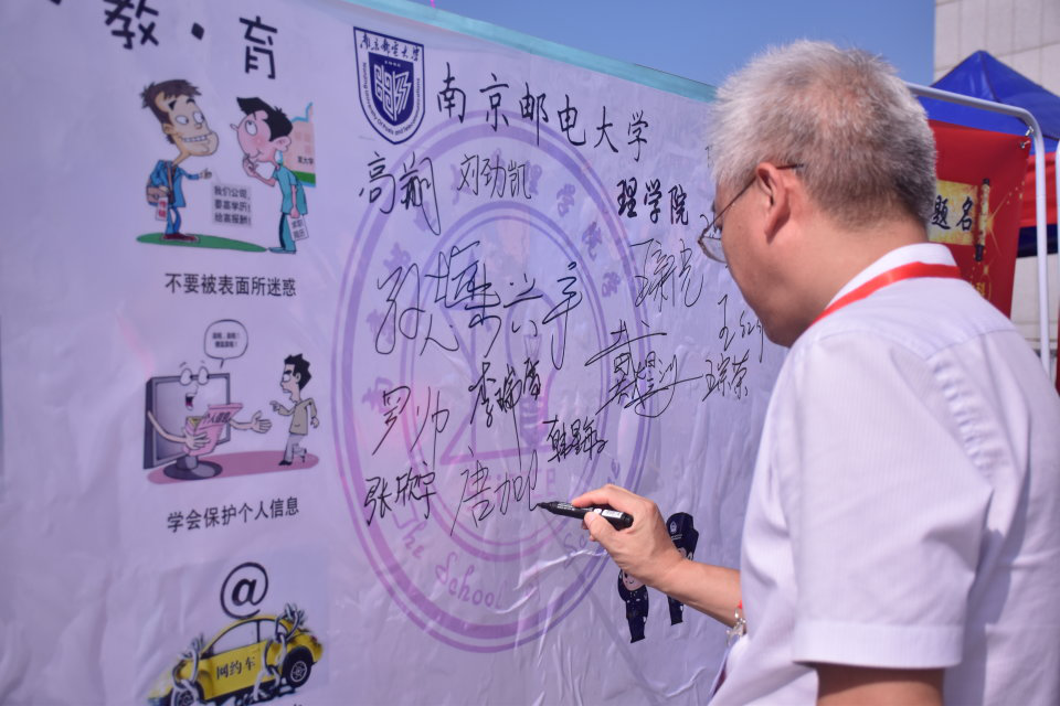 欢迎你,相聚在南邮这片崭新天地的新同学!让我们在这里去摘取辉煌的花冠,在这里耕耘出太阳底下最神圣的诗行!祝福你们,愿我们共同度过大学的幸福时光!
