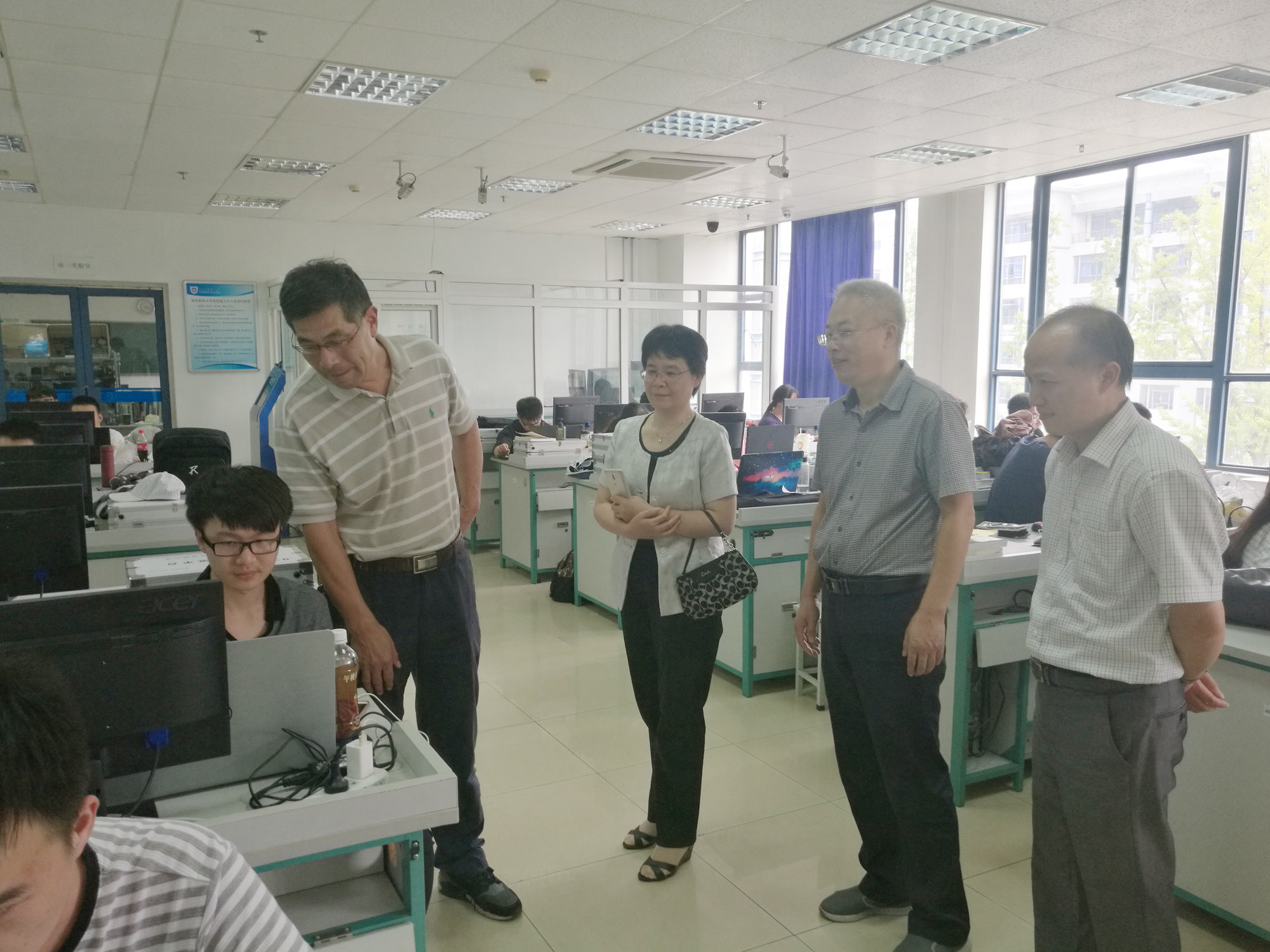 2018年9月14日下午,党委常委副董事长王承宽研究员、教务处处长张玲华教授、副处长刘芫健教授、实践教学科科长贺超凯老师一行来到仙林校区竞赛场地,在太阳成集团tyc分管数学建模竞赛工作副经理唐加山教授的陪同下,亲切看望了参加2018年全国老员工数学建模竞赛的同学们。