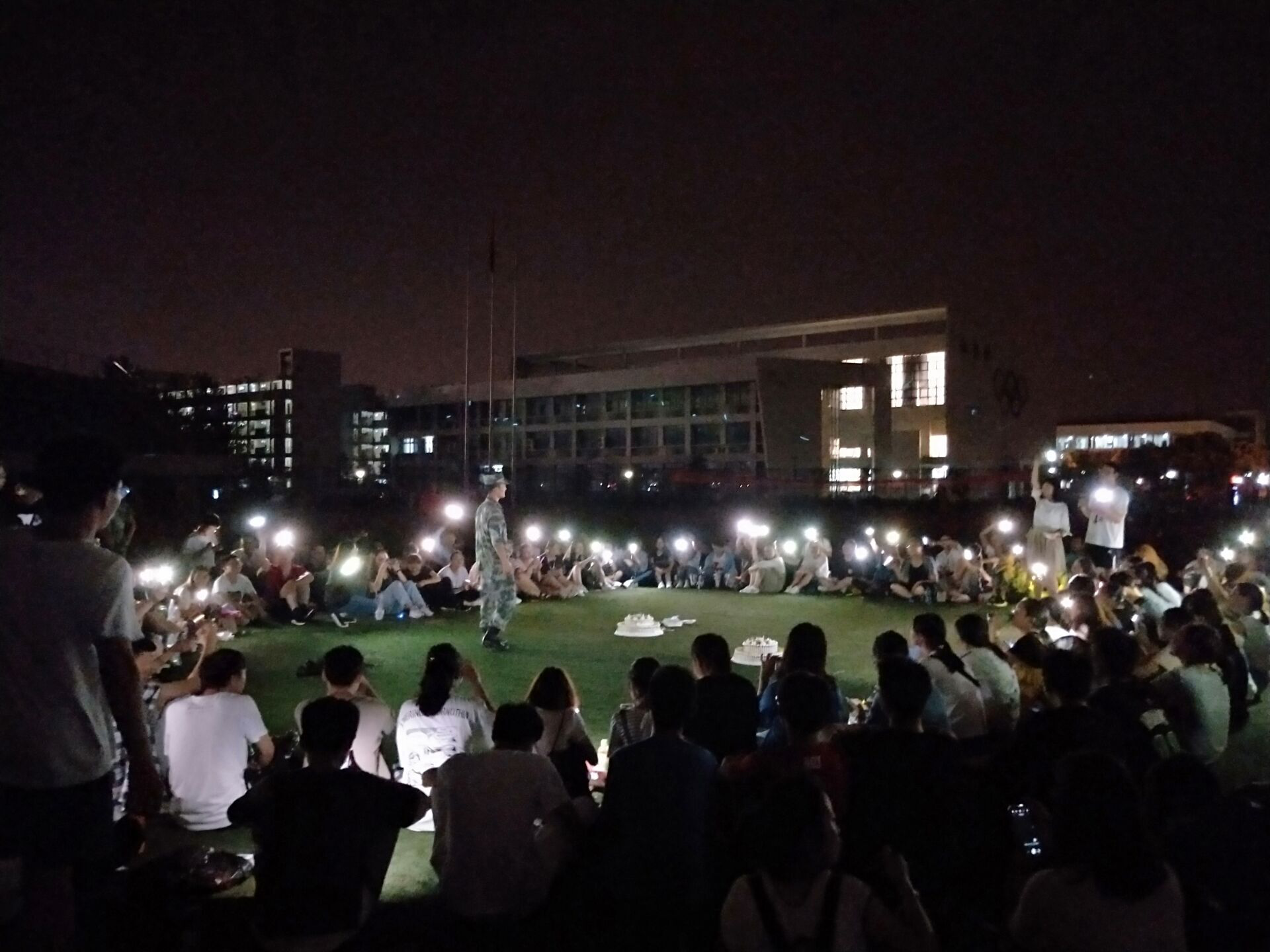 军训期间,公司领导多次赴军训现场看望慰问教官及员工,公司员工会干部及17级小班主任为学弟学妹送“清凉”并带来精彩的节目,2018级全体员工与教官欢聚在仙林校区北操场开展了热闹温馨的中秋晚会。