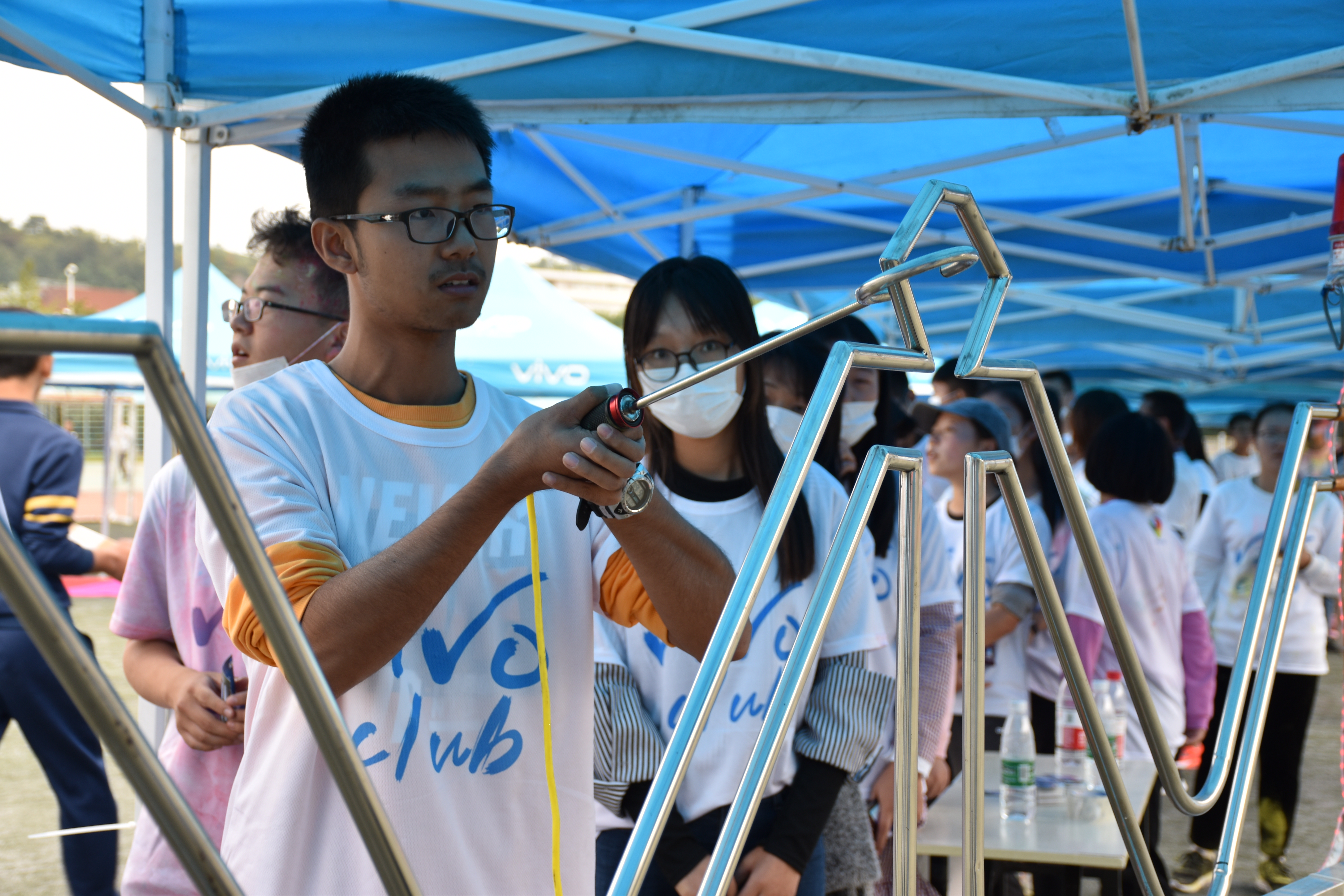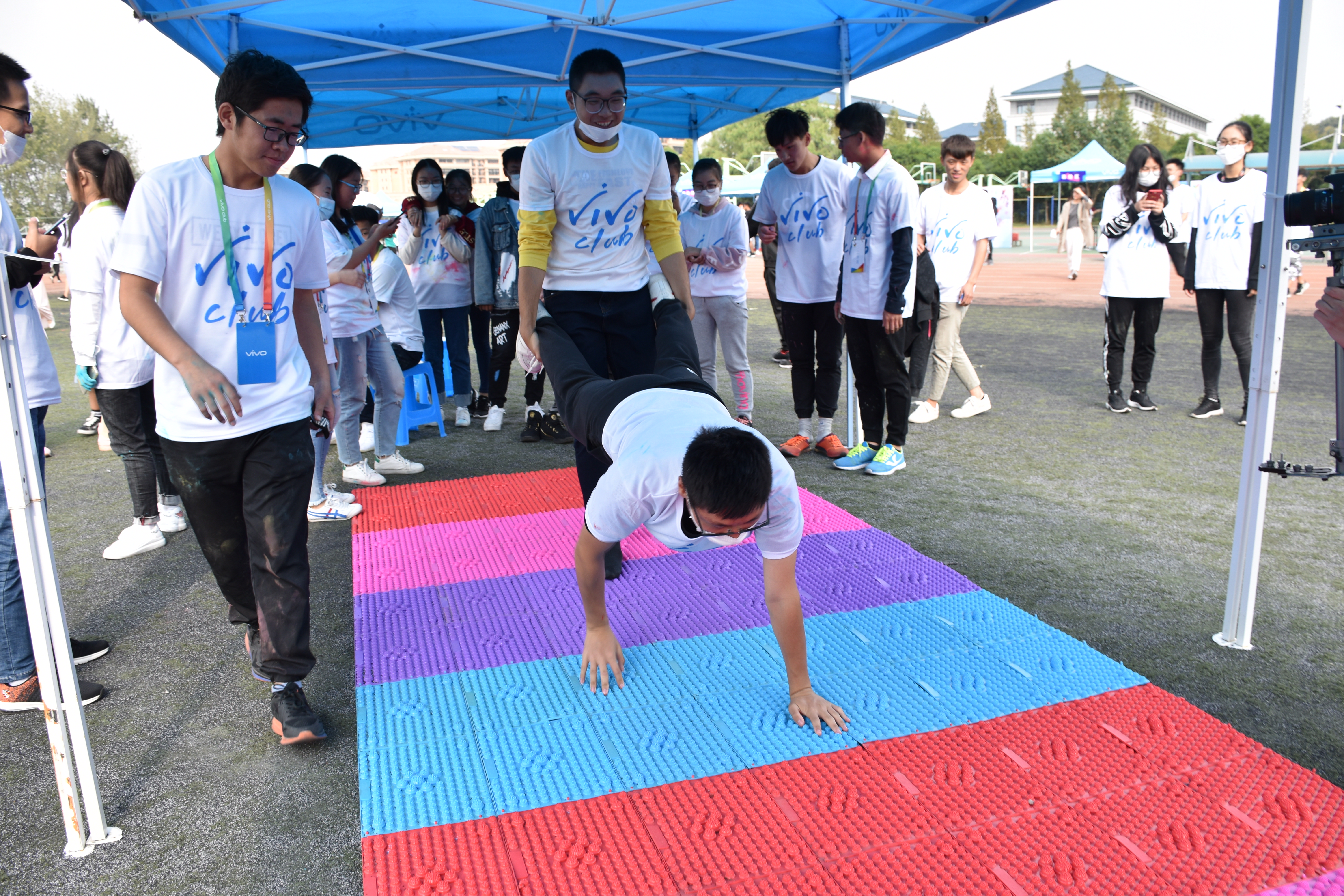 此外,活动还设立了签名墙、手印强和游戏区。在指压板大作战中,指压板上的同学一个个疼的龇牙咧嘴、满头大汗,但是为了胜利都努力的坚持到最后;乒乓球搬家听起来容易,十分考验稳定能力,大家缓缓地用筷子夹起乒乓球,慢慢移动着;在飞盘挑战区域,同学们奋力奔跑去接住飞盘;最难的游戏莫过于“穿越火线”了,大家手持铁环小心翼翼地在规定路线上前进,生怕铁环碰触到轨道。