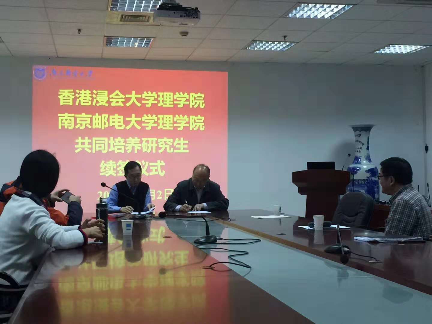 2018年11月2日下午16:30,太阳成集团tyc与香港浸会大学理学人才联合培养的续签活动在教2-314会议室成功举办。香港浸会大学数学系主任NG, Michael Kwok-Po(吴国宝)教授和公司李兴鳌经理分别代表两院成功签约。续签仪式由公司党委书记温勇教授主持。