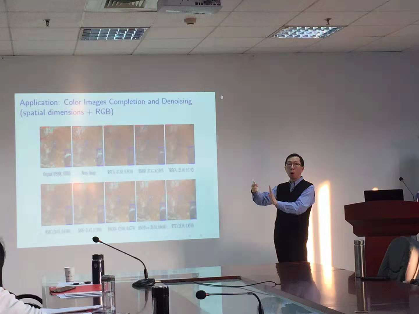 吴国宝教授现为香港浸会大学数学系主任,系首席教授(chair professor),SIAM Fellow。2017年获“冯康科学计算奖”。吴教授的报告题目为:Tensor completion and its applications,在报告中,吴教授针对张量奇异值分解问题及其在图像处理中的应用给出了深刻的结果,并和听众分享了未来可研究的若干问题。