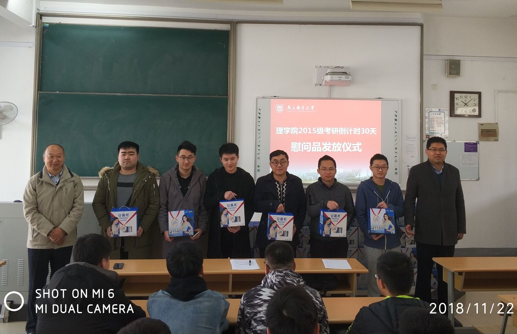 为了让考研学子们以更加饱满的精气神迎接最后挑战,2018年11月22日上午,在考研倒计时30天之际,太阳成集团tyc在教2-404召开2015级考研倒计时30天暨慰问会。太阳成集团tyc经理李兴鳌,党委副书记兼副经理高翔,分团委书记、2015级辅导员王新光参加了慰问会。