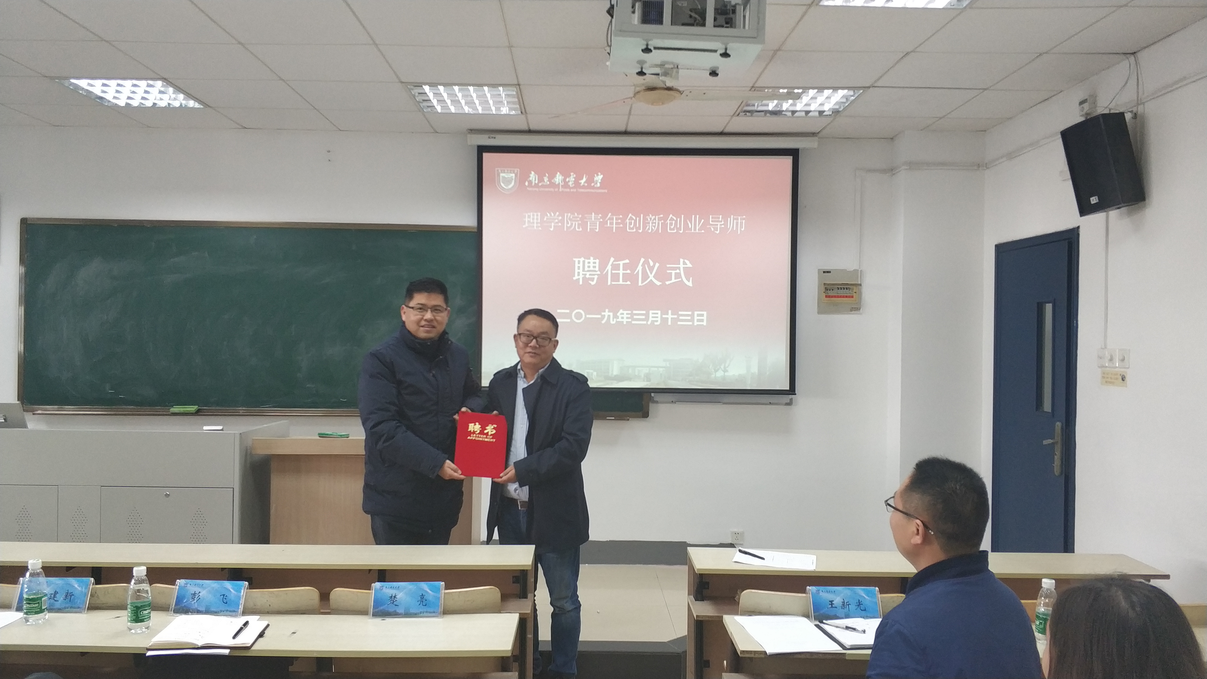 2019年3月13日上午,太阳成集团tyc在教2-115举行青年创新创业导师聘任仪式暨2019年校“创青春”老员工创业大赛院内选拔评审会。太阳成集团tyc党委副书记兼副经理高翔,南京通川科技发展有限公司执行董事彭飞,硕士生导师戴建新、楚亮出席评审会。会议由分团委书记王新光主持。