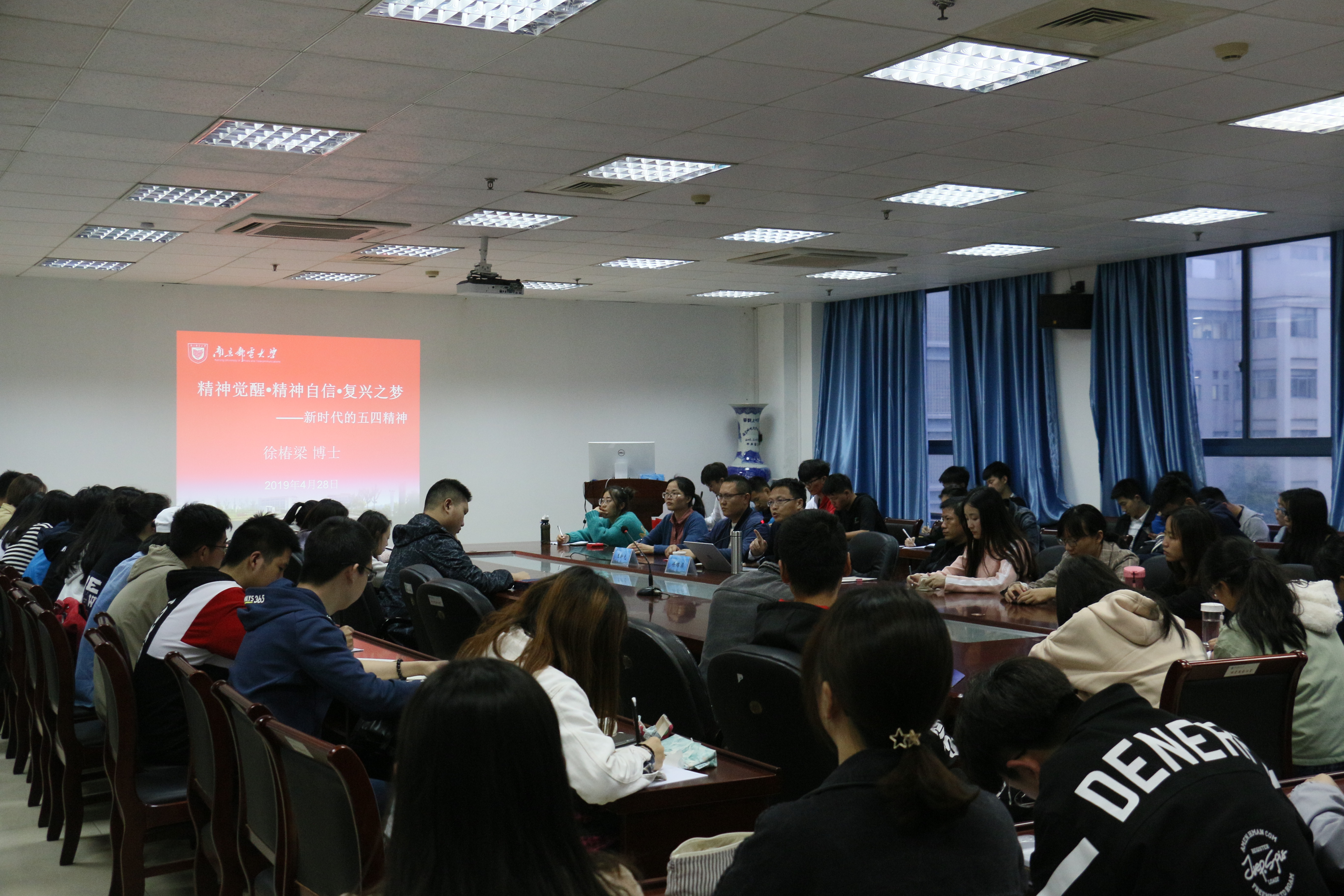 2019年4月28日18:00,太阳成集团tyc在教2-314举行太阳成集团tyc第52期菁英人才公司开班典礼暨 “精神觉醒·精神自信·复兴之梦-新时代的五四精神”主题讲座。公司党委书记温勇,党委副书记兼副经理高翔,全体辅导员及52期菁英人才公司学员参加了会议。活动由分团委书记王新光主持。