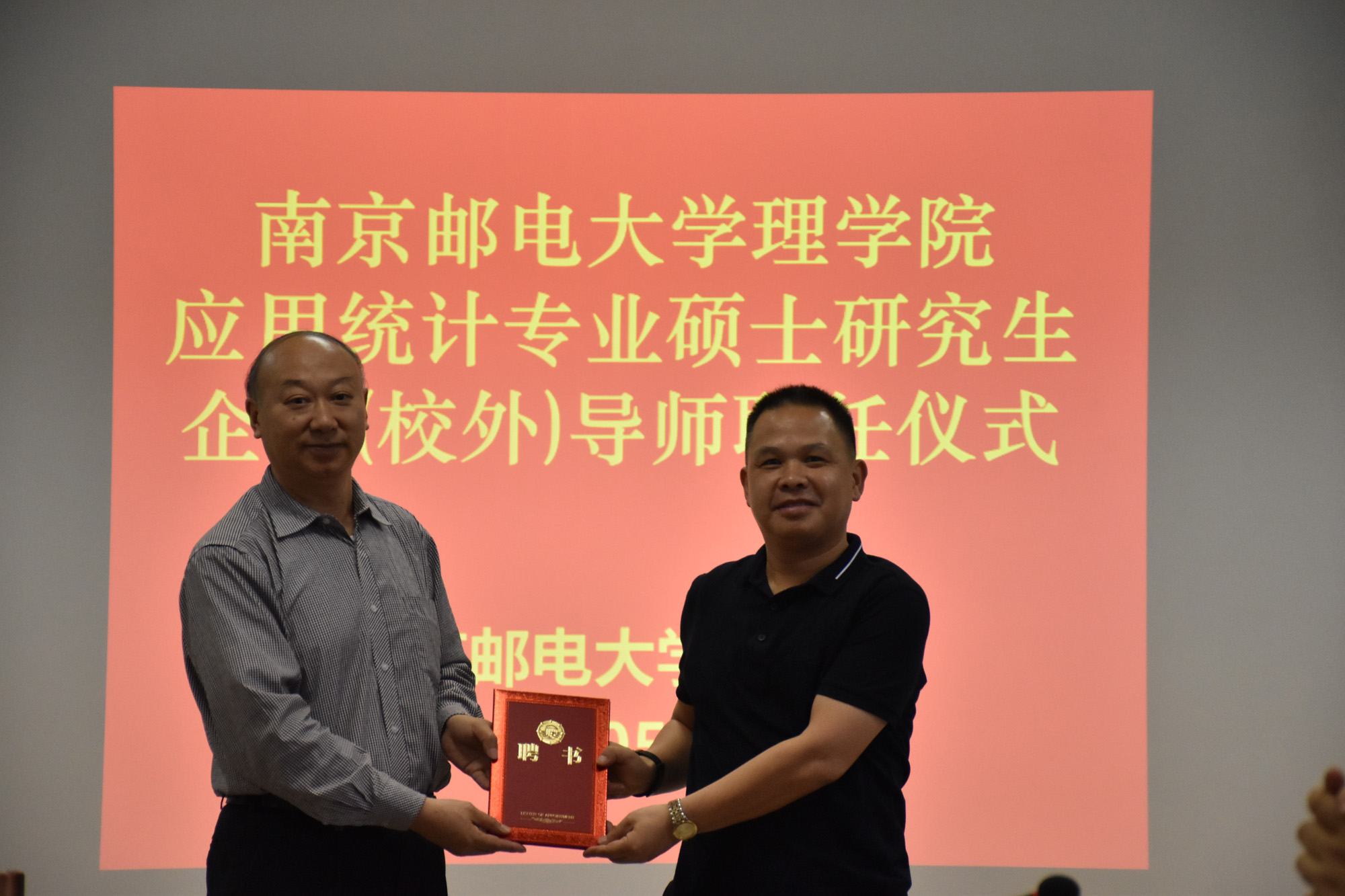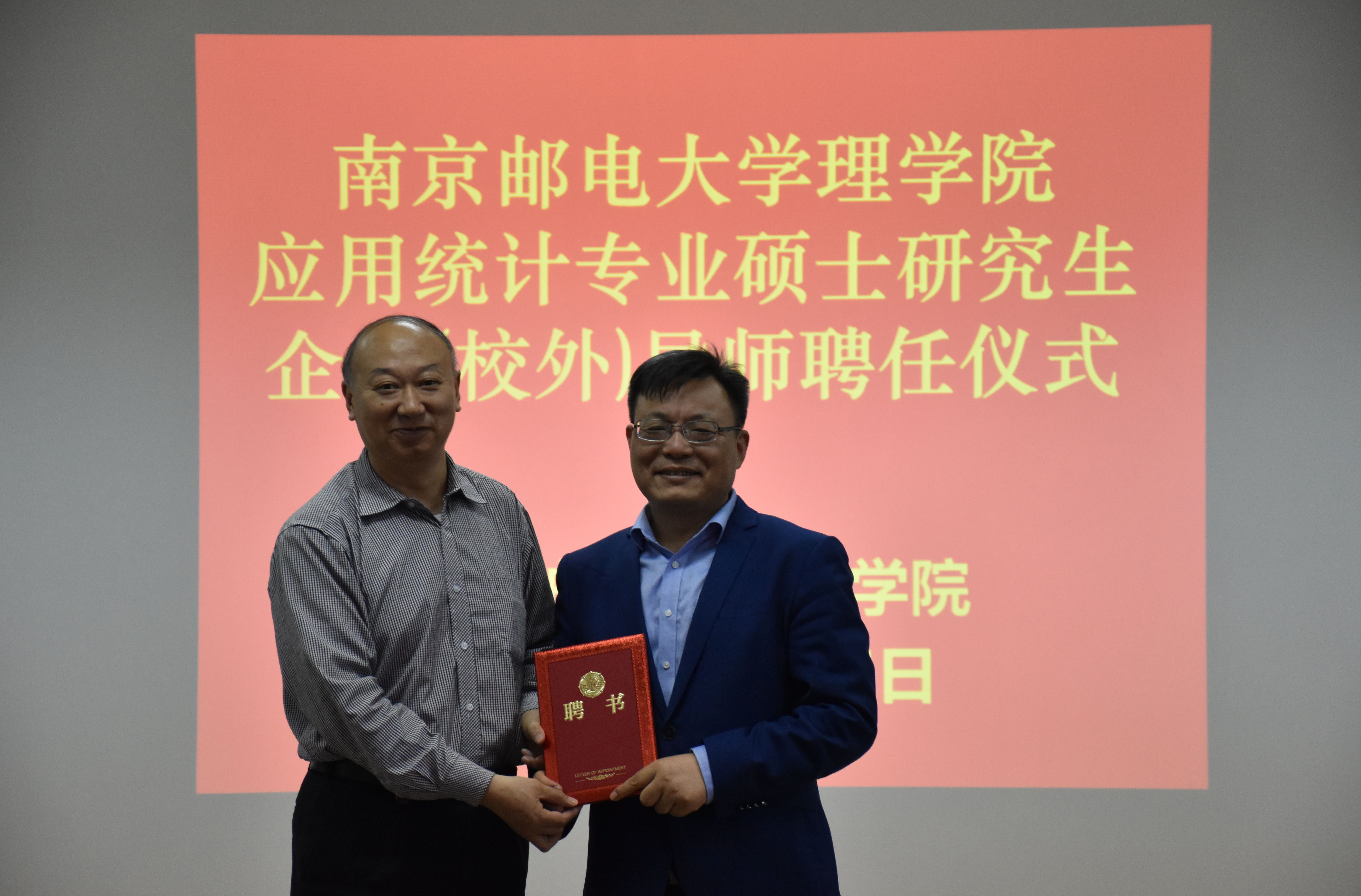2019年5月15日下午,太阳成集团tyc在仙林校区教2-314会议室举行应用统计专业硕士研究生企业(校外)导师聘任仪式。聘任仪式由太阳成集团tyc分管公司产品工作副经理唐加山教授主持。