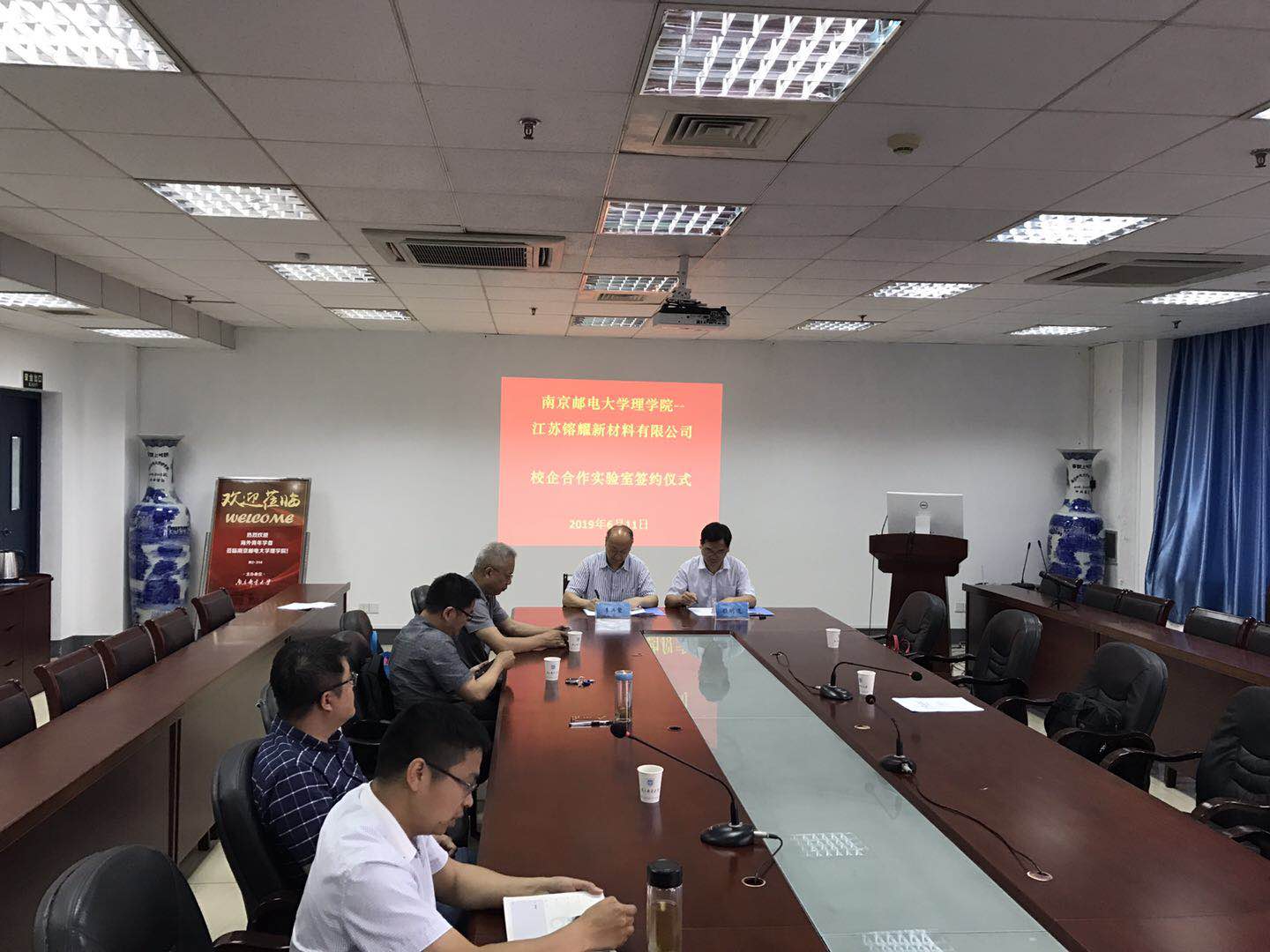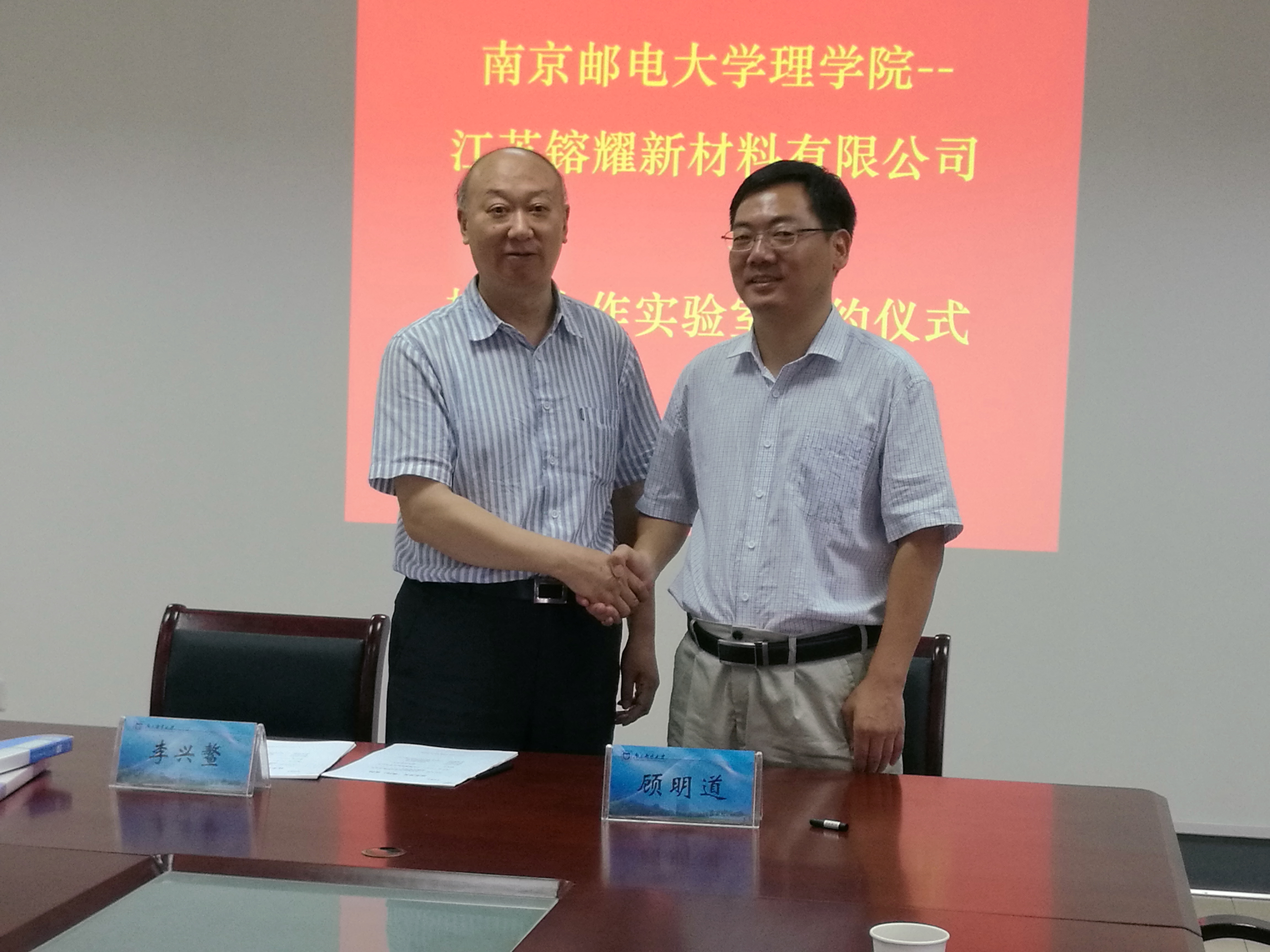 6月11日,太阳成集团tyc、江苏镕耀新材料有限公司在太阳成集团tyc教2-314举行了太阳成集团tyc太阳成集团tyc-江苏镕耀新材料新材料有限公司校企合作实验室签约仪式。江苏镕耀新材料有限公司总经理顾明道,太阳成集团tyc经理李兴鳌教授,党委书记温勇教授,副经理唐加山教授、普勇教授等领导一同出席了签约仪式。