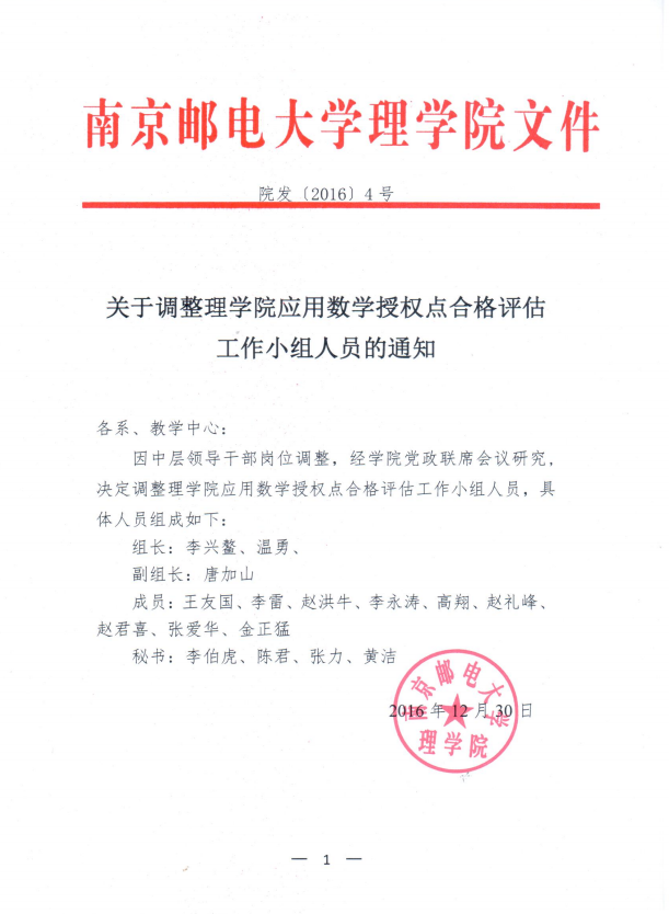 关于调整太阳成集团tyc应用数学授权点合格评估工作小组人员的通知