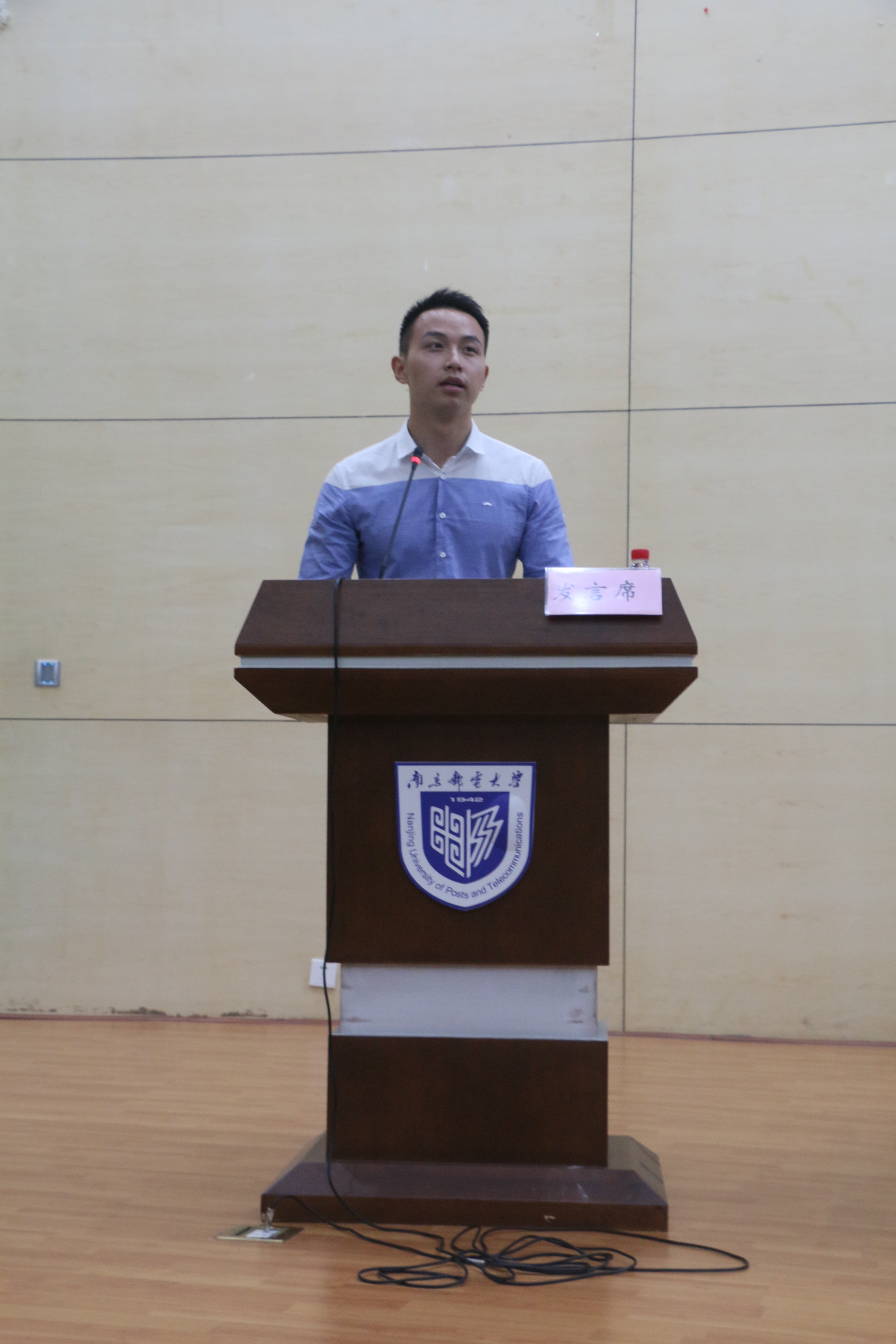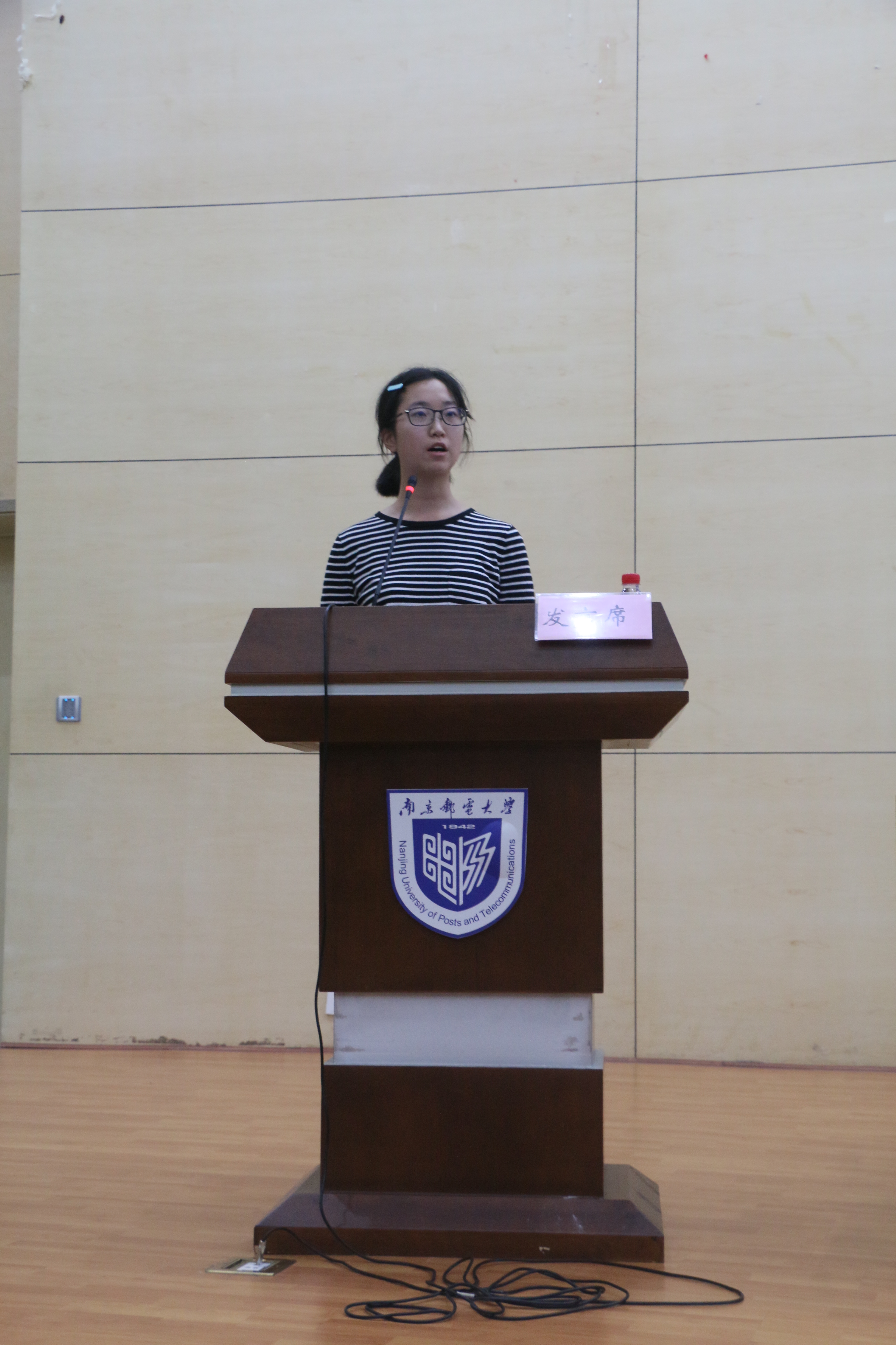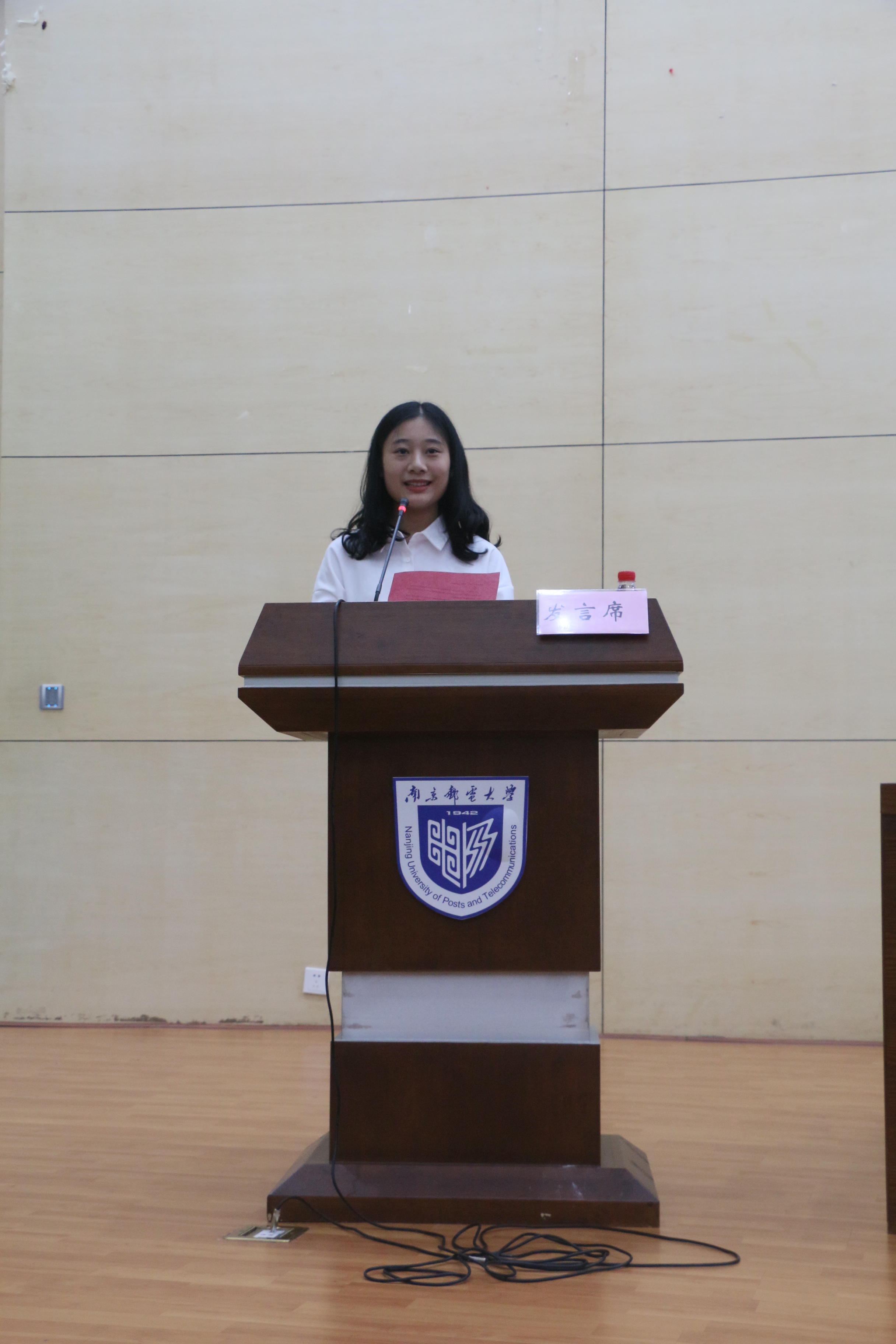 教师代表、应用物理系钮伟老师,在校生代表、2016级应用统计学专业盖佳雯同学,研究生新生代表、2019级数学专业张玺同学,本科生新生代表、2019级应用物理学专业申雨婷同学先后上台发言。