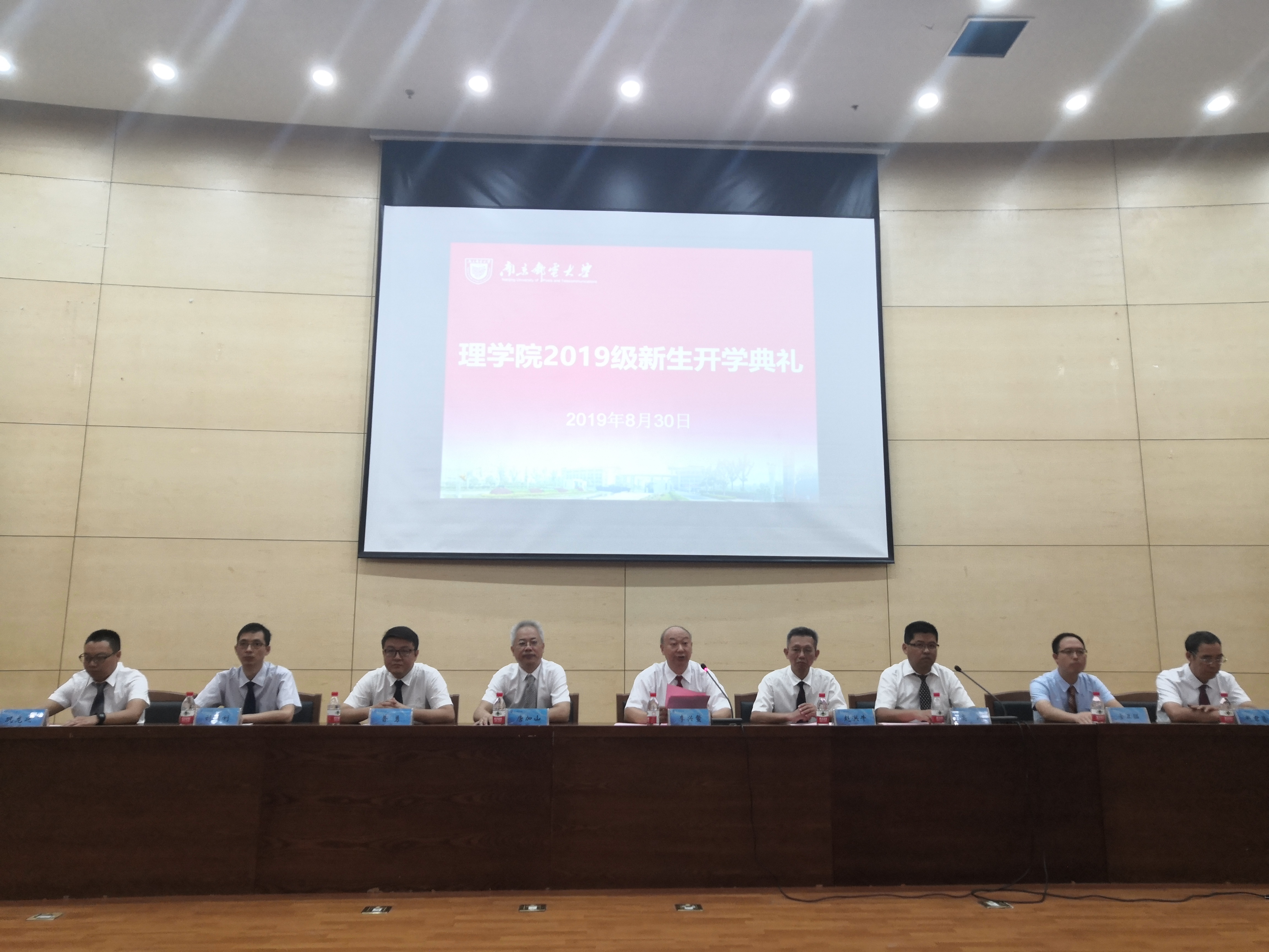 2019年8月30日上午,太阳成集团tyc在仙林校区图书馆四楼报告厅隆重举行2019级新生开学典礼。经理李兴鳌教授、副经理赵洪牛副教授、副经理兼统计学系主任唐加山教授、副经理普勇教授、经理助理金正猛教授、刘胜利教授、信息与计算科学系主任赵君喜教授、应用物理系主任巩龙延教授、关工委倪静虹老师、教师代表钮伟老师、分团委书记、2019级本科生辅导员王新光老师、2019级研究生辅导员王红月老师以及各班新生班主任秦芳芳、吴赛楠、檀健、龚明亮、周兴飞、黄欣老师出席开学典礼,典礼由党委副书记兼副经理高翔副研究员主持。